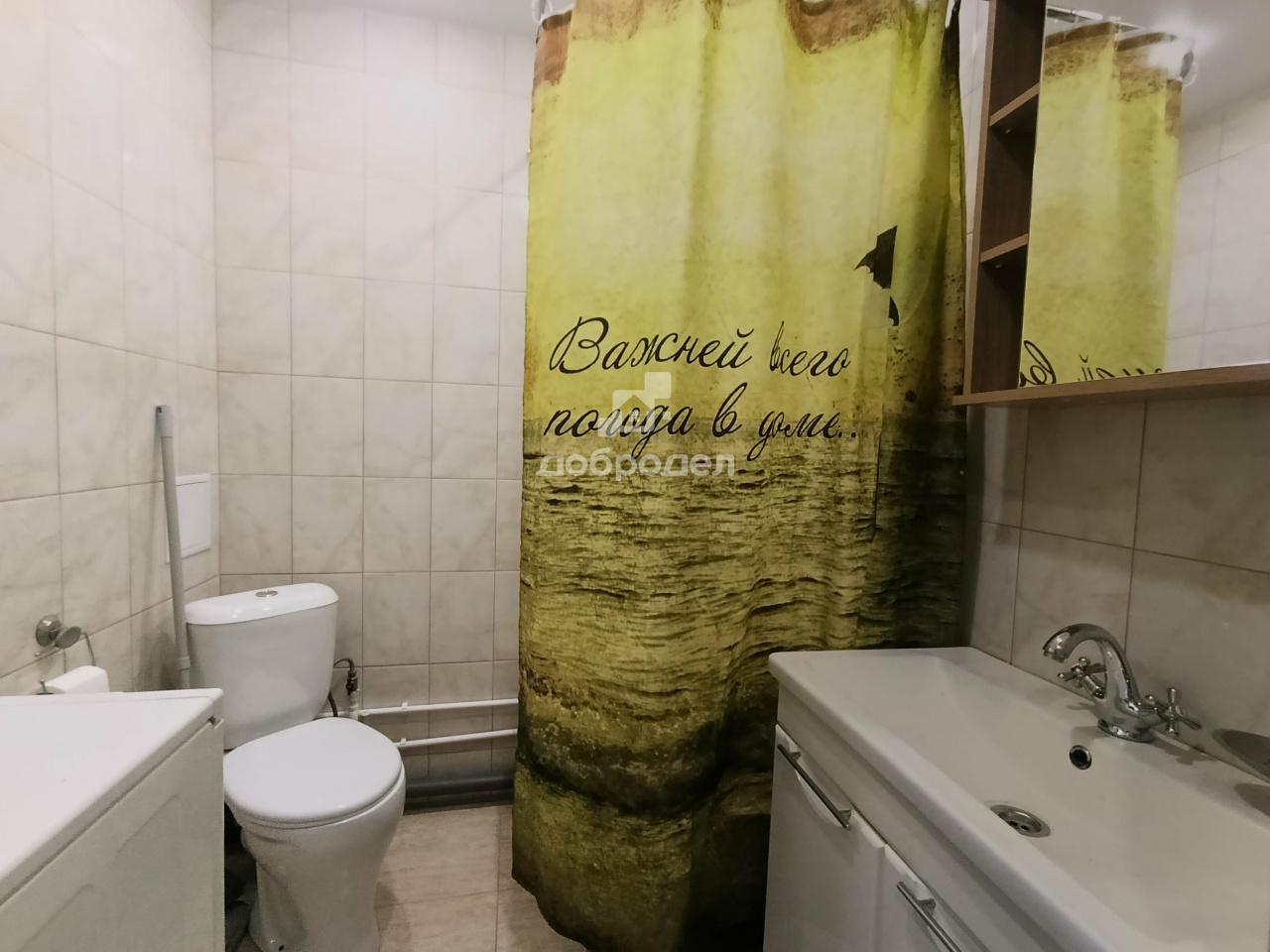 Всё необходимое для комфортного проживания есть: кухонный гарнитур, электрическая плитка, стол, холодильник, диван, шкаф, душевая, стиральная машина.
