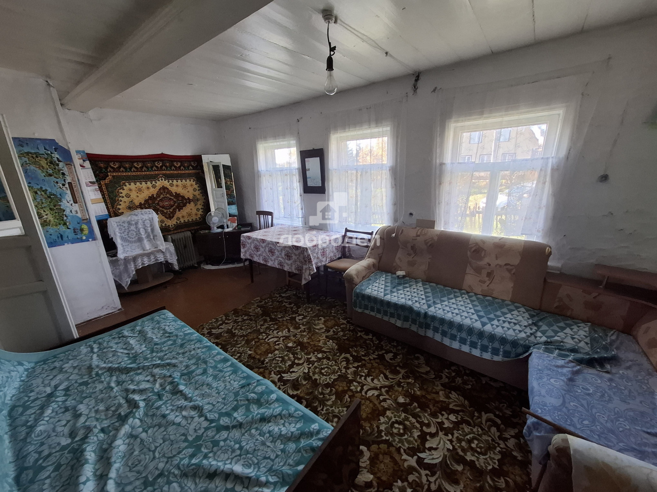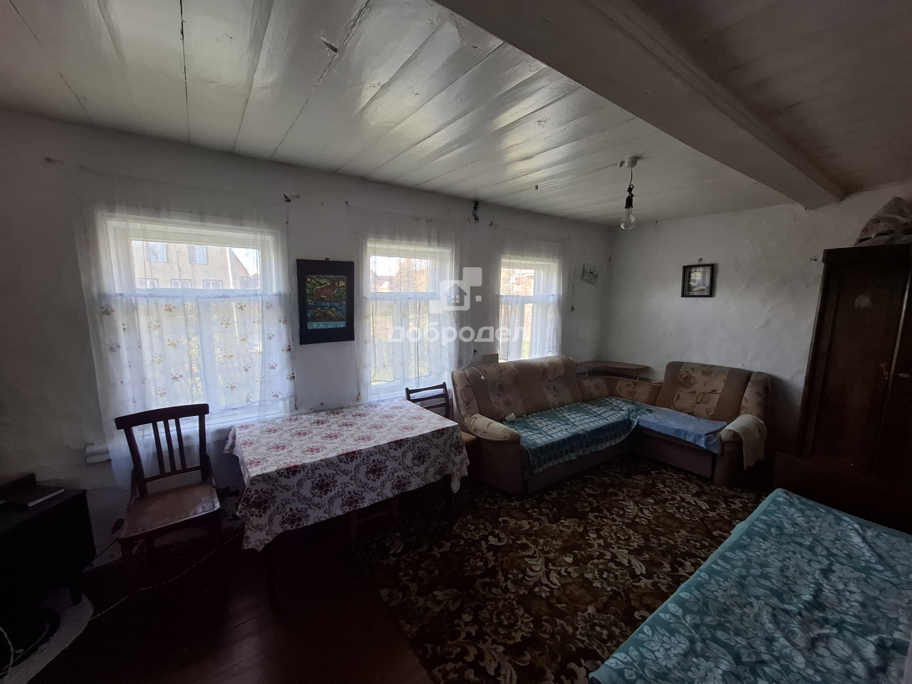 Маленький, удобный домик из бревна, есть большой погреб (сухой). Печное отопление. Газ на участке, в дом не заведён. Воды нет, туалет на улице.