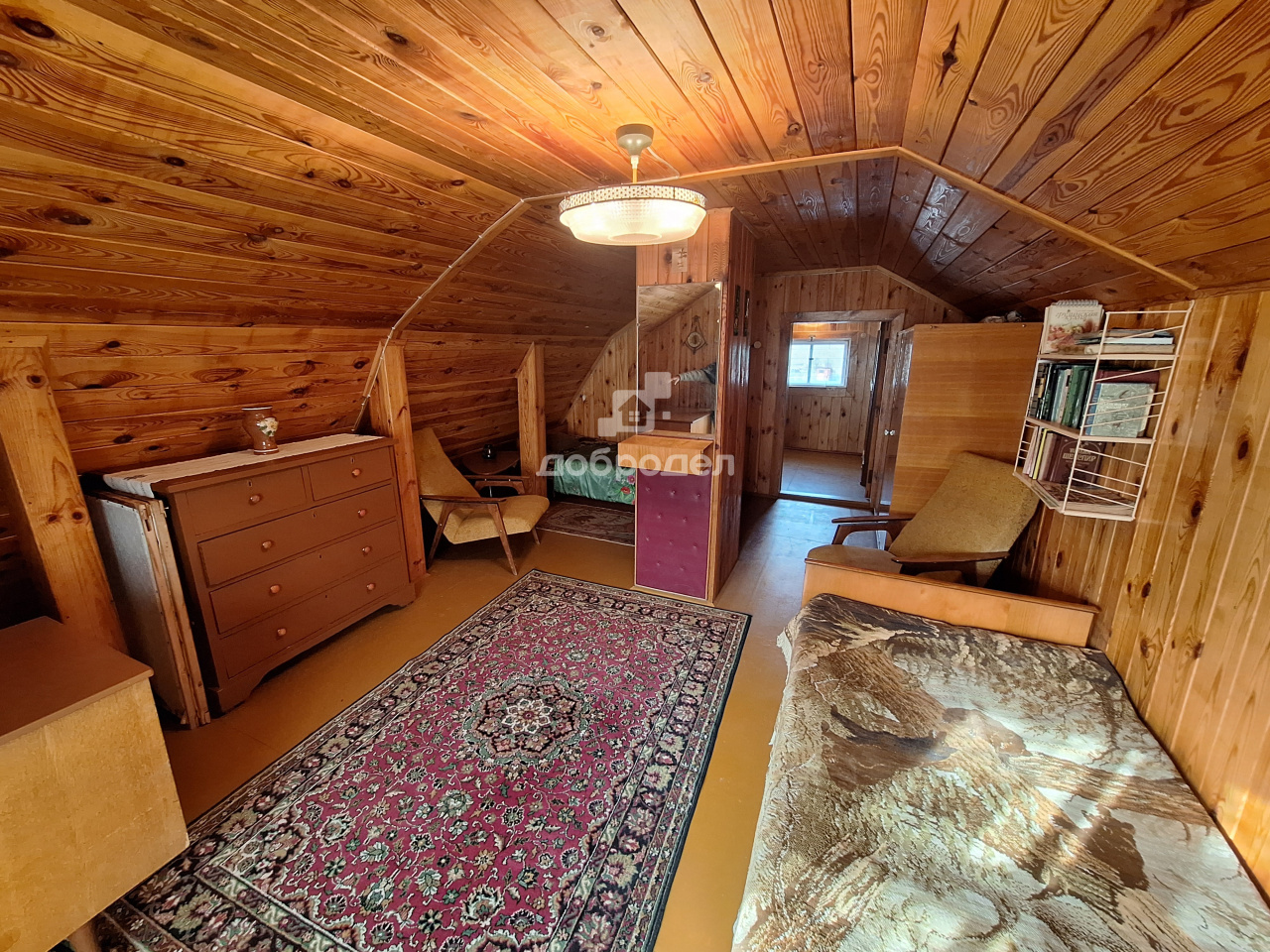 На втором этаже – просторная комната (24 кв.м ), нахождение в которой приносит непередаваемое наслаждение, она настолько уютная, а в дневное время лучи солнца наполняют светом комнату, нагревается натуральное дерево, которым облицованы стены и потолок и комната дышит тёплым, живым дыханием сосны - это не оставит никого равнодушным.