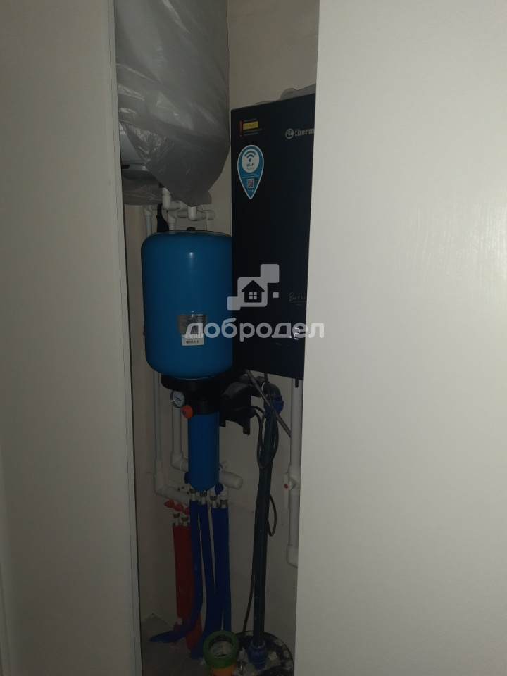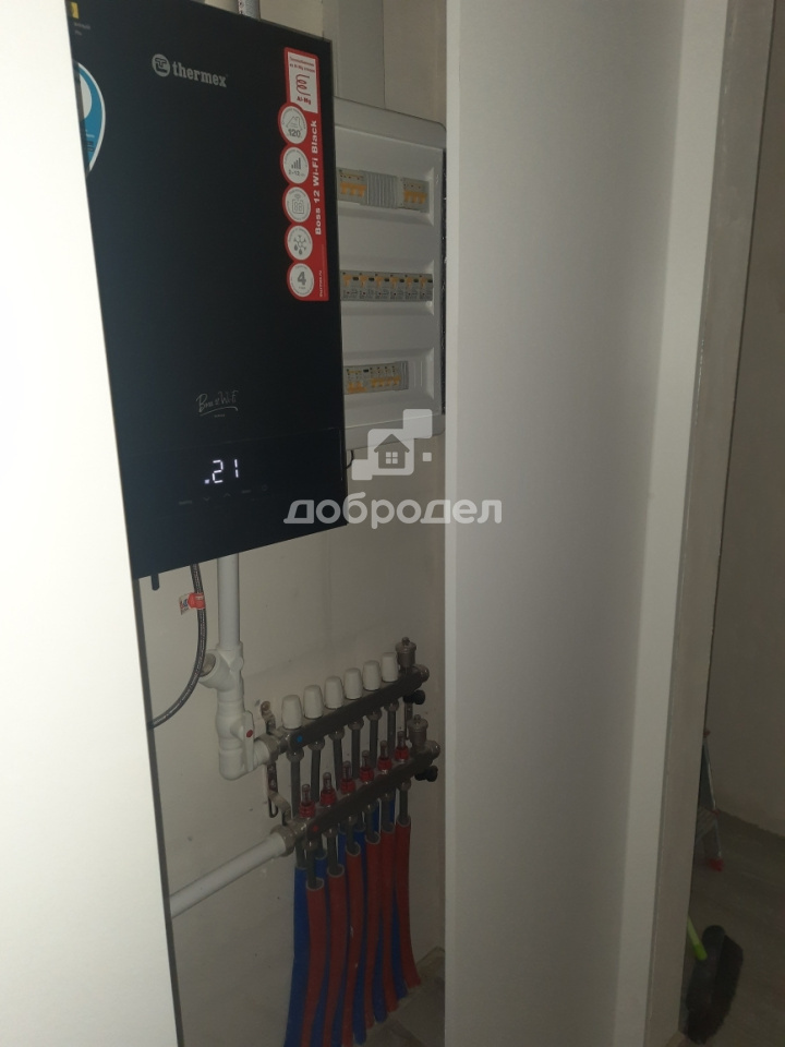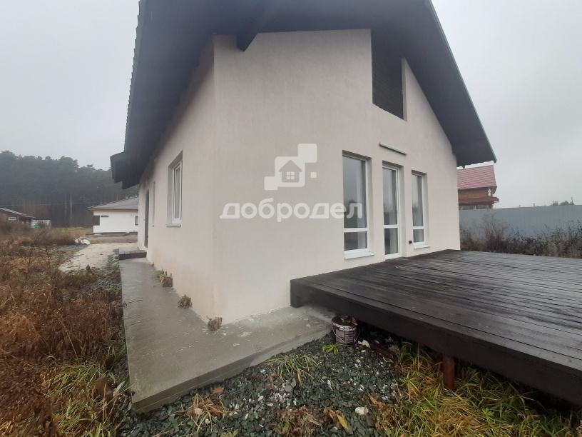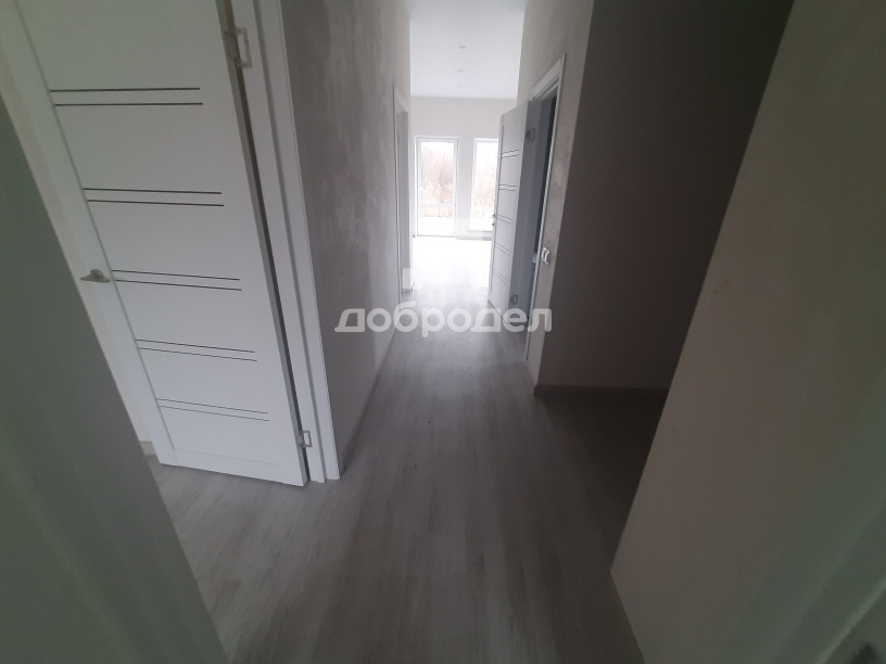 из трех комнат и кухни гостиной, с выходом на террасу. Все коммуникации подключены и расположены в доме( скважина, котел, накопительный бак, эл.щит) в прихожей в отдельном красиво выделенном месте. В доме натяжные потолки, теплый пол, на полу ламинат, стены подготовлены под обои, либо окраску, сделаны выводы для кухни, межкомнатные двери установлены, в санузле установлена ванна, раковина с зеркалом, унитаз, на стенах в санузле плитка. Дом возможно подключить к газу, после получения права собственности.