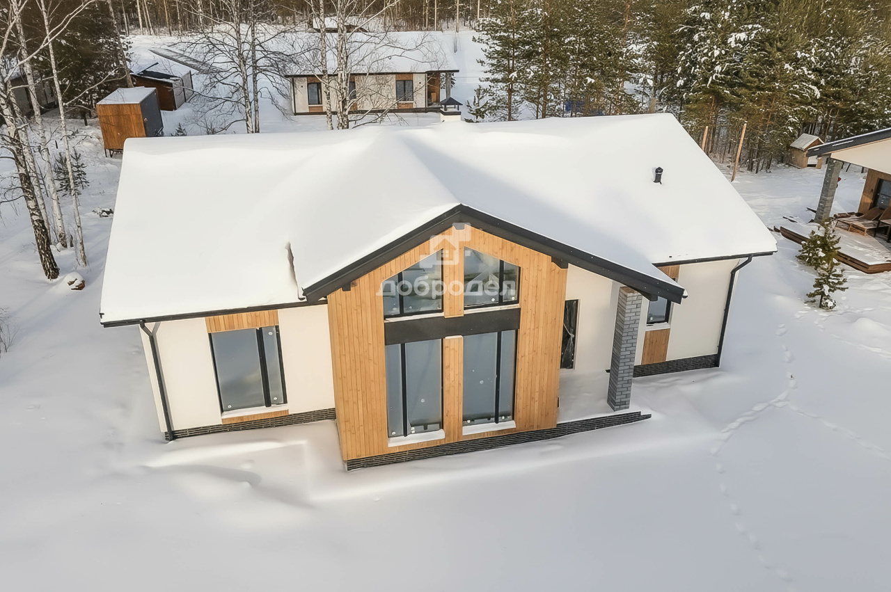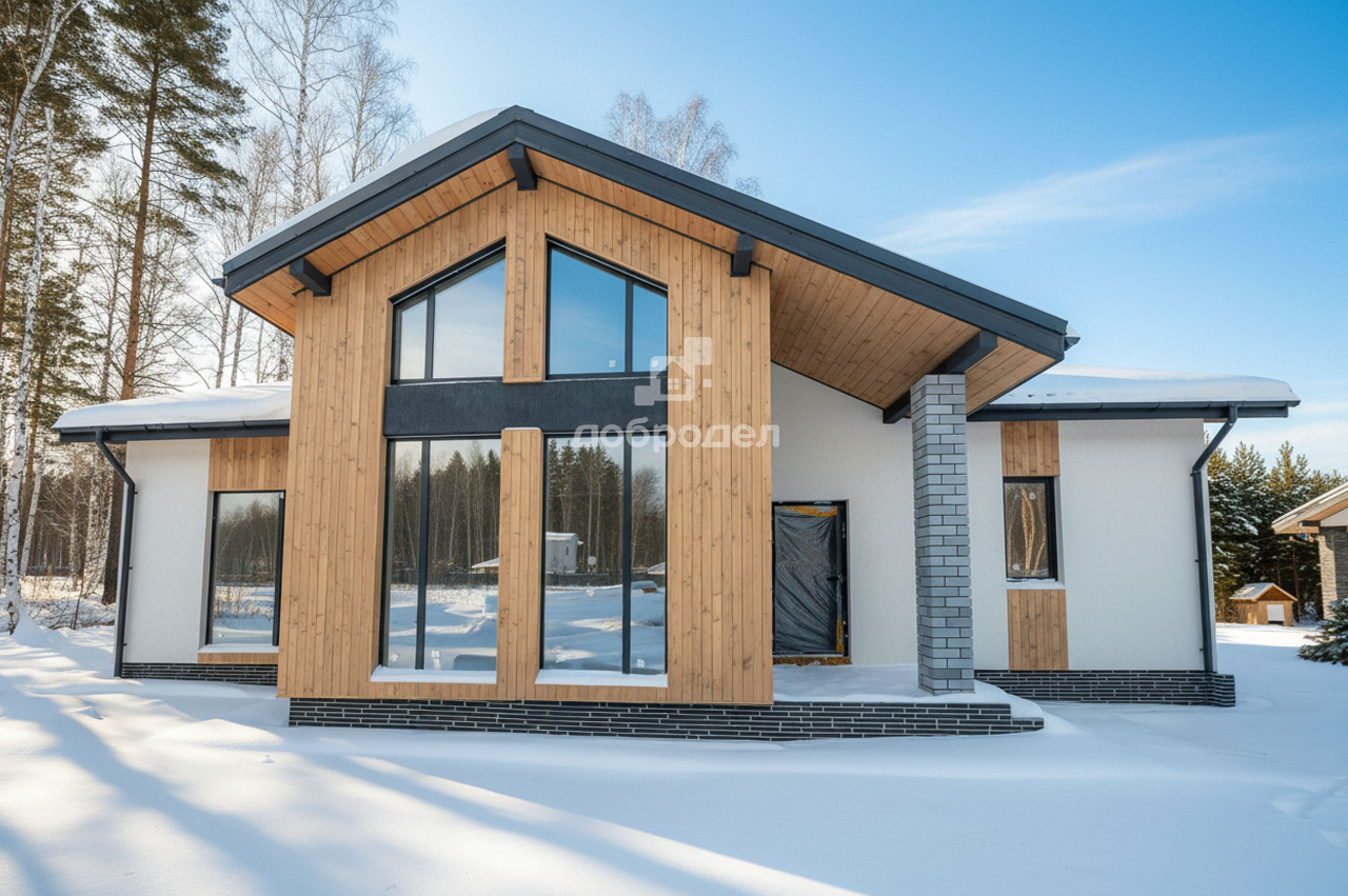 2025 г. постройки, готов! Отделка под чистовую! (можем сделать под ключ дизайнерский) материал стен газоблок 300 мм + утеплитель базальтовый 100 мм, кровля гибкая черепица! В любое время года в доме тепло. Дом оборудован всеми инженерными системами: теплые полы+радиаторы (канализация-станция биологической очистки!, центральное водоснабжение, эл-во, скоростной интернет), панорамное остекление! а также выход на мансарду