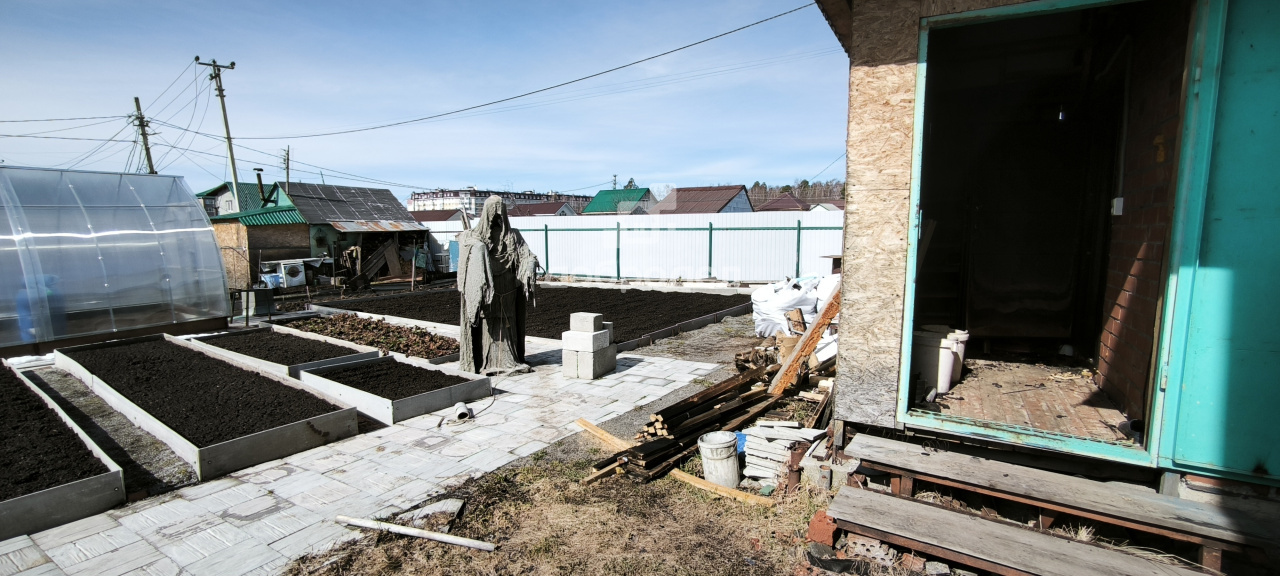 УЧАСТОК: квадратной формы. По всему периметру забор, с 2-х сторон металлический, с 2-х сетка, ворота откатные. Скважина 35 метров сертифицированная. Электричество 220, а в самом саду 380. Грядки 7 штук разработаны, посажена клубника, стоит теплица из поликарбоната, уличный туалет, дорожки из бихатона. Беседка, уличный душ и раковина, качель, железный вагончик для хранения инвентаря вместе с инвентарем все остается.