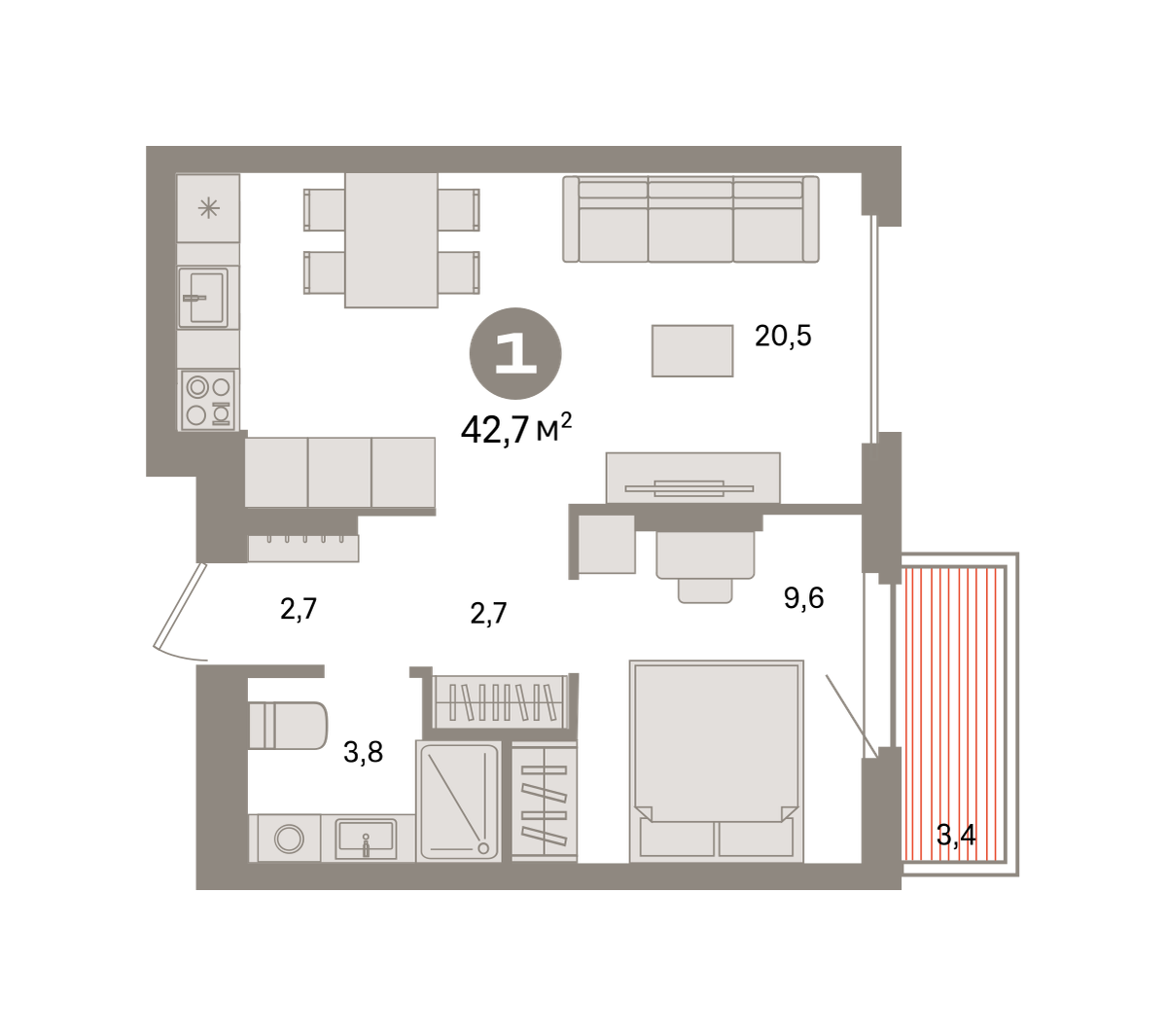 42.00 м² | 7 - 9 эт.