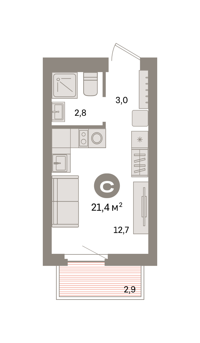 21.00 м² | 7 - 9 эт.