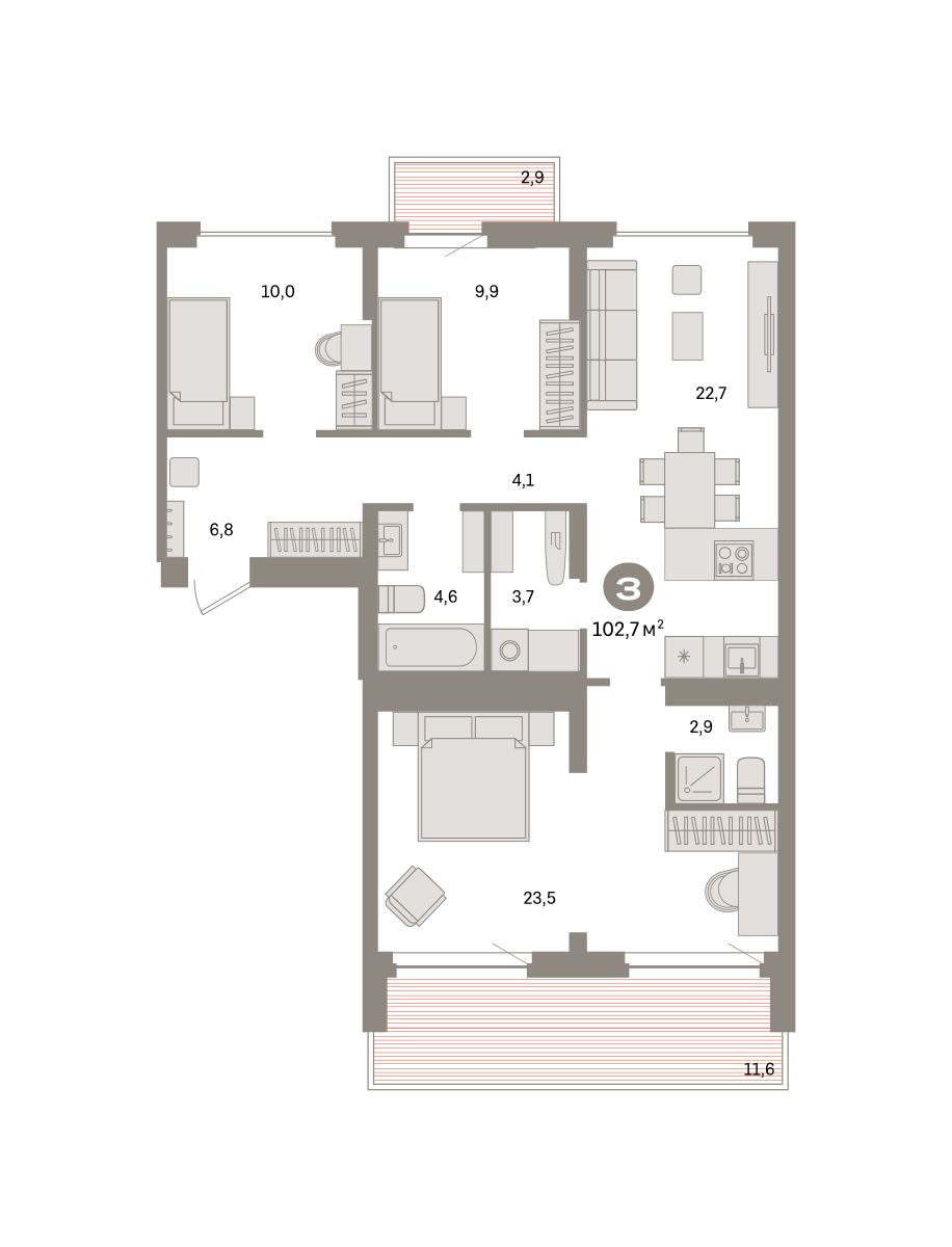 Продаётся с кладовой. Квартира с кухней-гостиной и тремя спальнями в квартале «Депо». Особенности планировки: балкон, окна на две стороны, предчистовая отделка, разнесённые спальни, терраса на крыше. № квартиры в нашей базе: ДЕП04-Ж7.8.1.