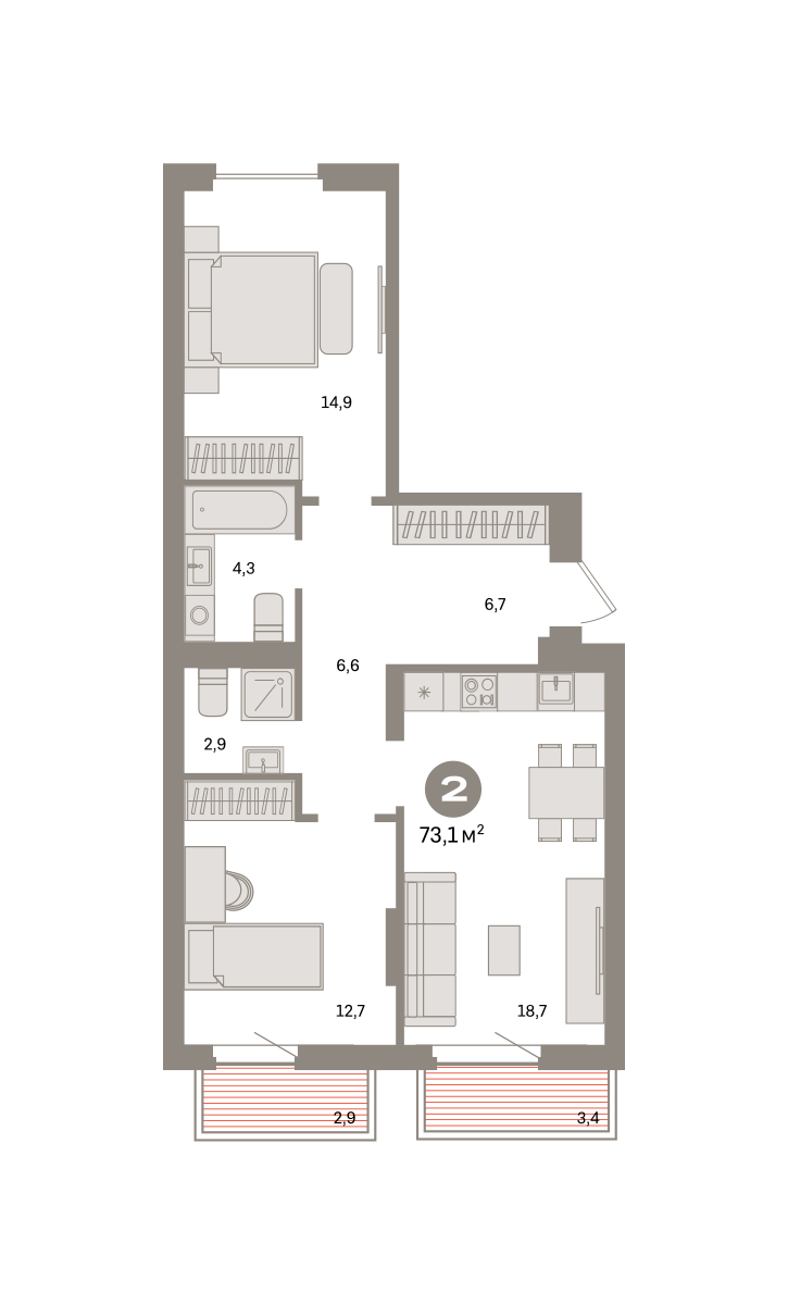 73.00 м² | 6 - 9 эт.
