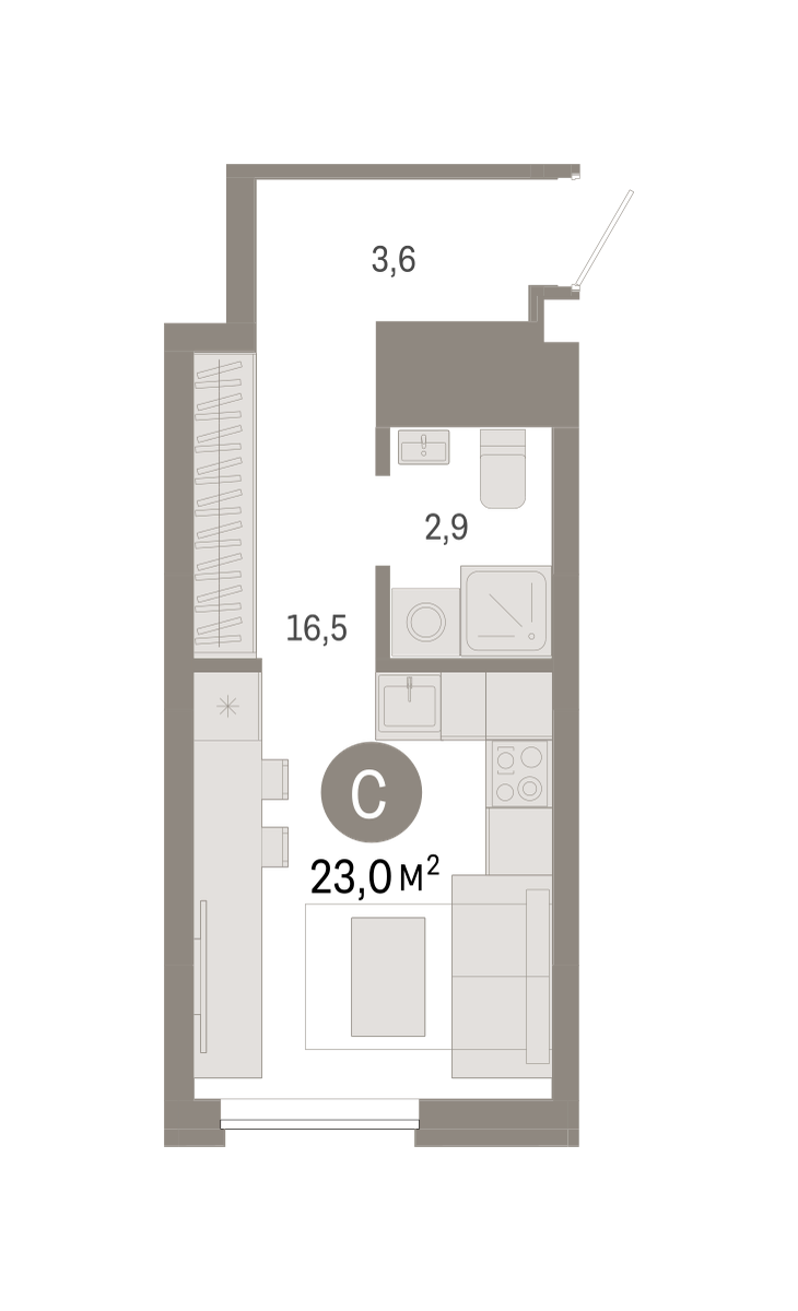 Квартиры-студии в «Северном квартале» — это квартиры с кухонной зоной, местом для отдыха и сна, ванной комнатой, нишами под хранение или отдельной гардеробной. Полезная площадь квартиры расширяется за счёт тёплой лоджии, где удобно разместить рабочий кабинет.