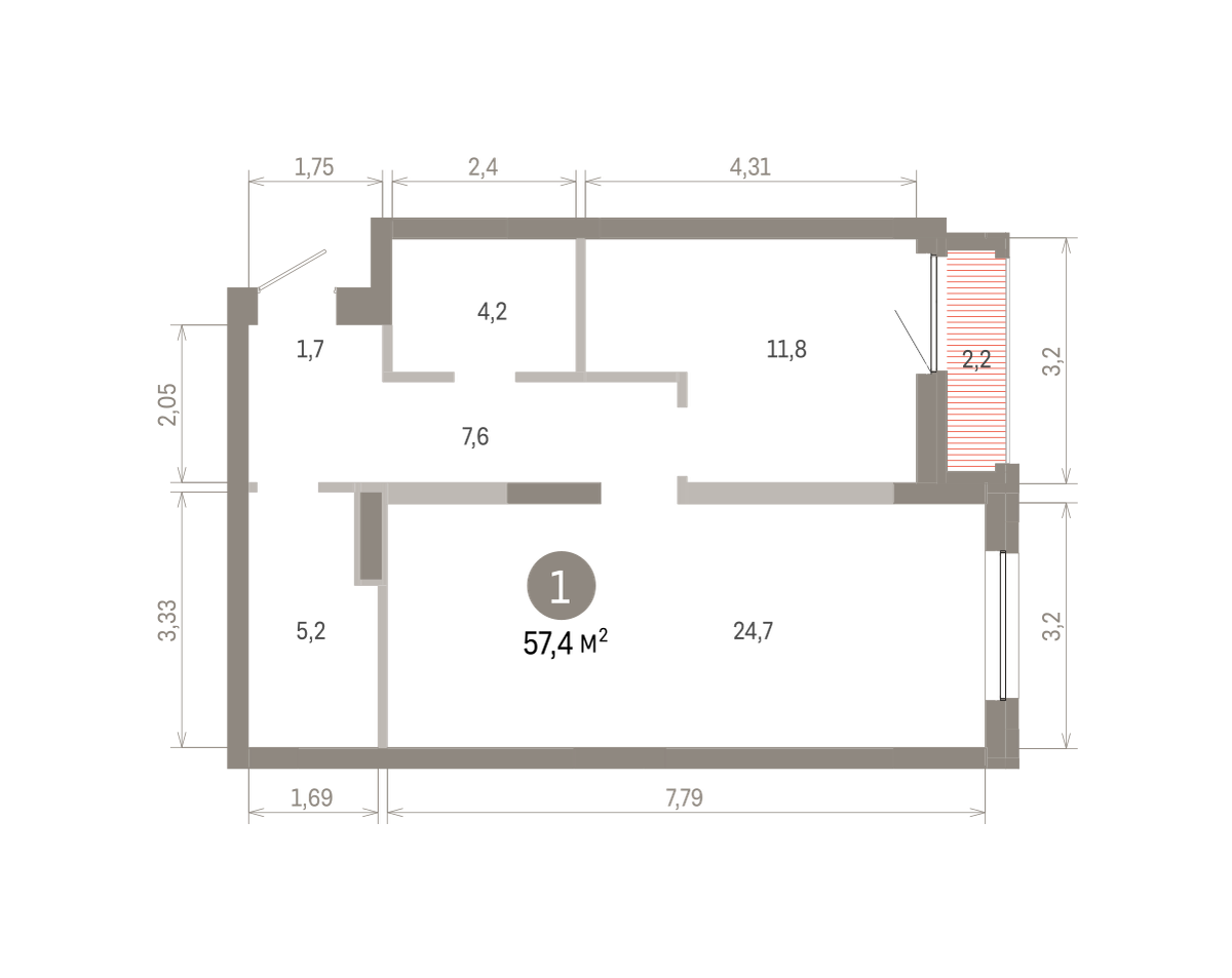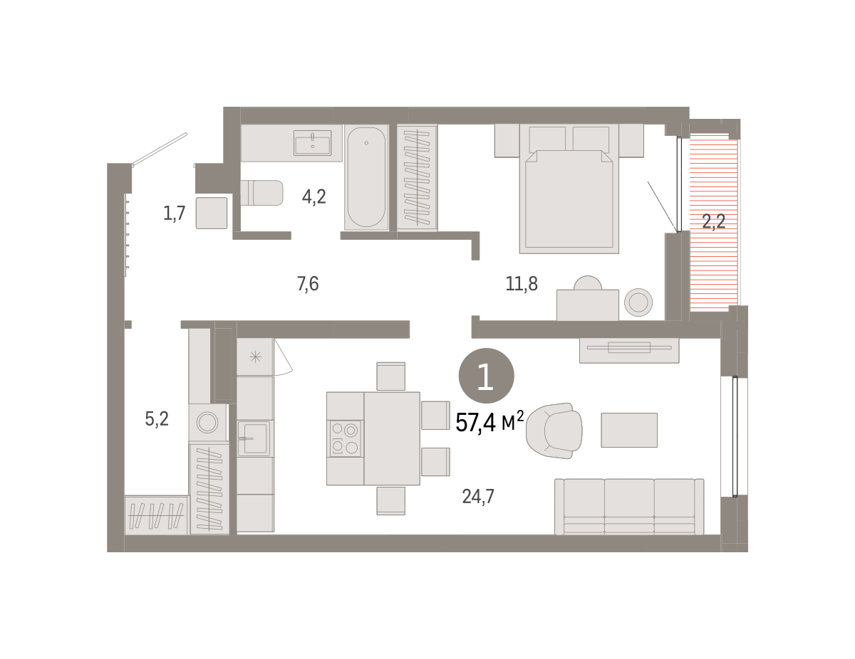 Продаётся с кладовой. Квартира с кухней-гостиной и одной спальней в Южных кварталах. Особенности планировки: предчистовая отделка. № квартиры в нашей базе: ЮКВ11-Ж1.11.5.
