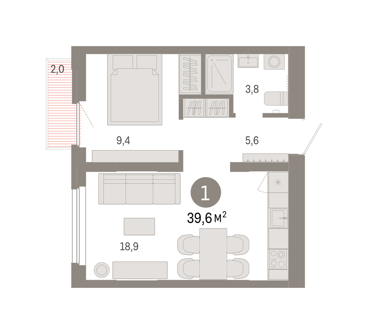 Продаётся с кладовой. Квартира с кухней-гостиной и одной спальней в Бруснике в Академическом. Особенности планировки: балкон, предчистовая отделка. № квартиры в нашей базе: АКД04-Ж6.7.5.
