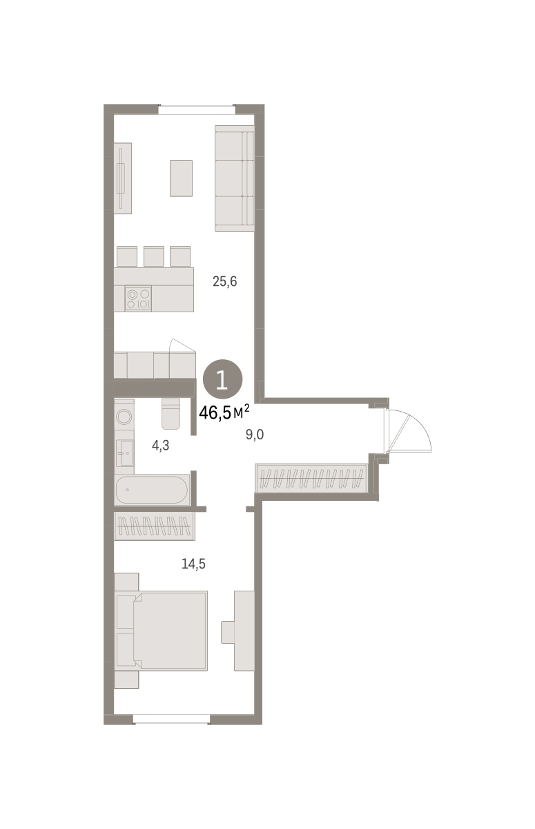1-к квартира | 42.36 м² | 15 - 21 эт.