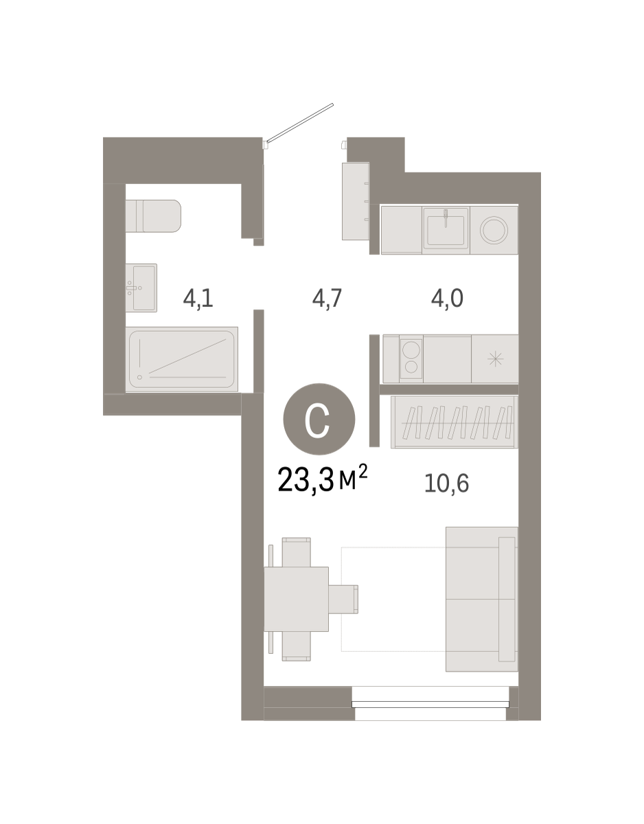 Студия в Северном квартале. Особенности планировки: предчистовая отделка. № квартиры в нашей базе: СКВ03.2-Ж1.5.4.