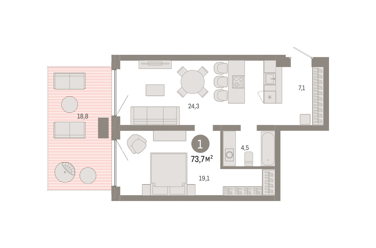 Продаётся с кладовой. Квартира с кухней-гостиной и одной спальней в Южных кварталах. Особенности планировки: вид во двор, предчистовая отделка, терраса. № квартиры в нашей базе: ЮКВ11-Ж1.2.1.