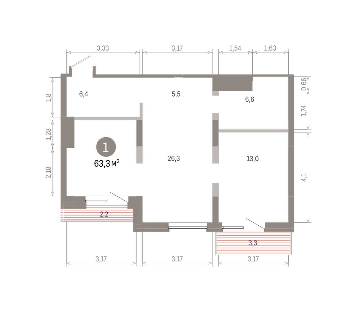 63.00 м² | 7 - 8 эт.