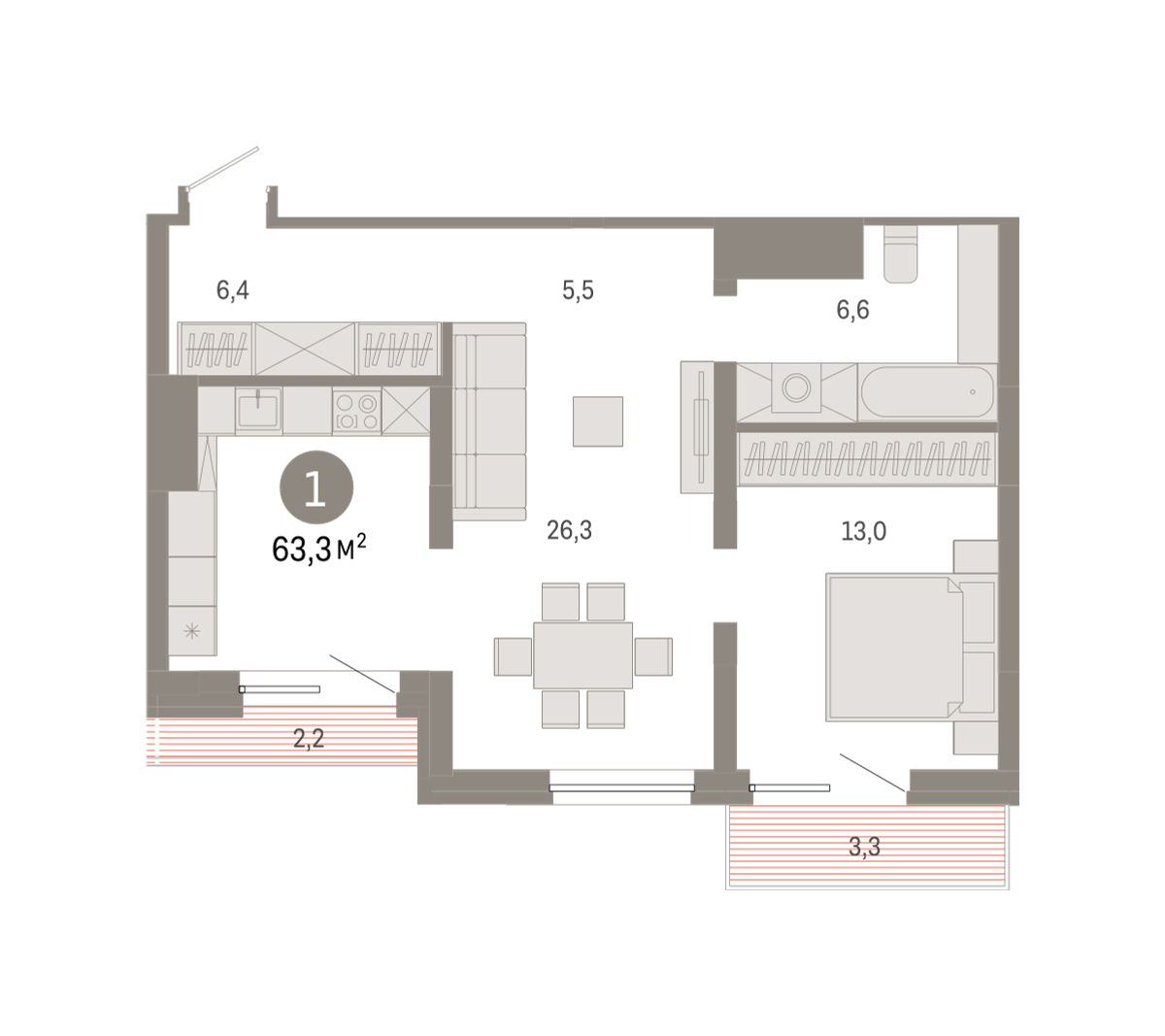 61.30 м² | 2 - 19 эт.