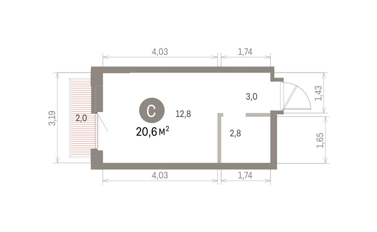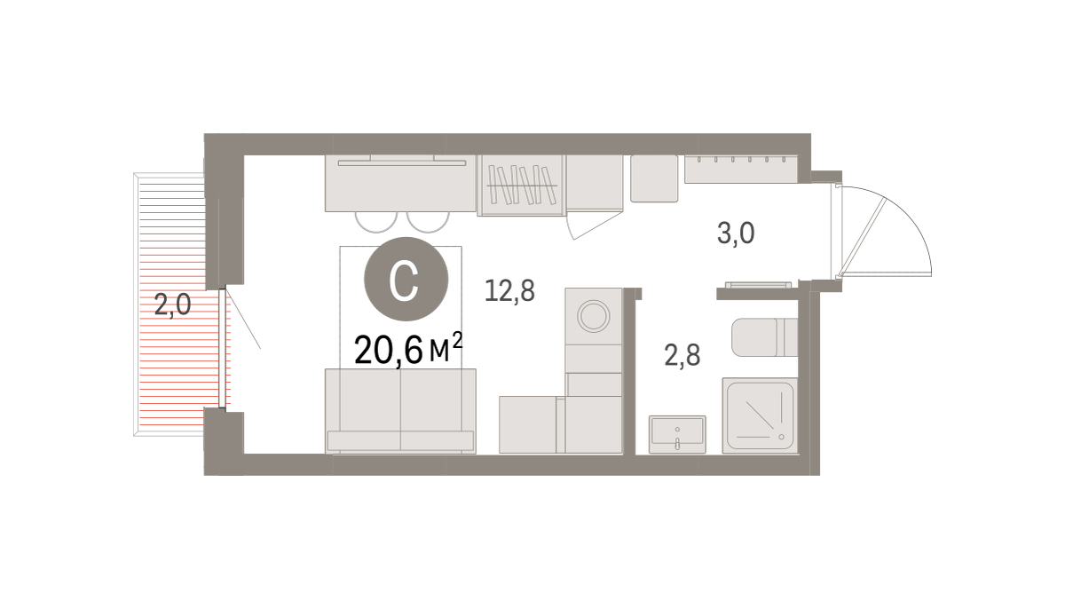 Студия в Бруснике в Академическом. Особенности планировки: предчистовая отделка, балкон. № квартиры в нашей базе: АКД05-Ж1.3.4.