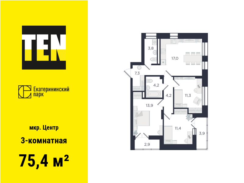 Квартира в центре от застройщика! Концепт-проект Екатерининский парк - это новый формат жилой среды для тех, кто хочет жить в центре событий, с европейским комфортом и эстетикой. На территории проекта появится концептуальный урбан-парк, созданный для прогулок, релаксации и активного отдыха. Локация Екатерининского парка - это исторический центр города, на пересечении улиц Азина Свердлова - Мамина-Сибиряка - Шевченко. Здесь отличная транспортная развязка и быстрый доступ в любую точку города. В квартале множество кафе и магазинов для приятного отдыха и комфортного шопинга. Пять минут до метро, две минуты до Харитоновского парка, семь минут до набережной Исети, а кроме того культурная программа буквально в двух шагах. Контроль доступа, видеонаблюдение и круглосуточная охрана обеспечат безопасность для себя и близких. Настоящим украшением холлов станут уютные мягкие зоны для ожидания и общения. Колясочные просторные и удобные. Двор большой с живописными растениями и различными площадками: зоны отдыха, детские, игровые и спортивные площадки - каждому будет приятно проводить здесь время. Квартира передается на ваш выбор: с чистовой отделкой или под чистовую. Ведь реализовать все свои идеи в интерьере - это так здорово! Чтобы переезд в новую квартиру был лёгким и комфортным, действуют выгодные условия оплаты: - акционные предложения - ипотека от ведущих банков, семейная ипотека   - рассрочка от застройщика - трейд-ин Хотите узнать больше о проекте и забронировать квартиру? Звоните или оставляйте заявку!