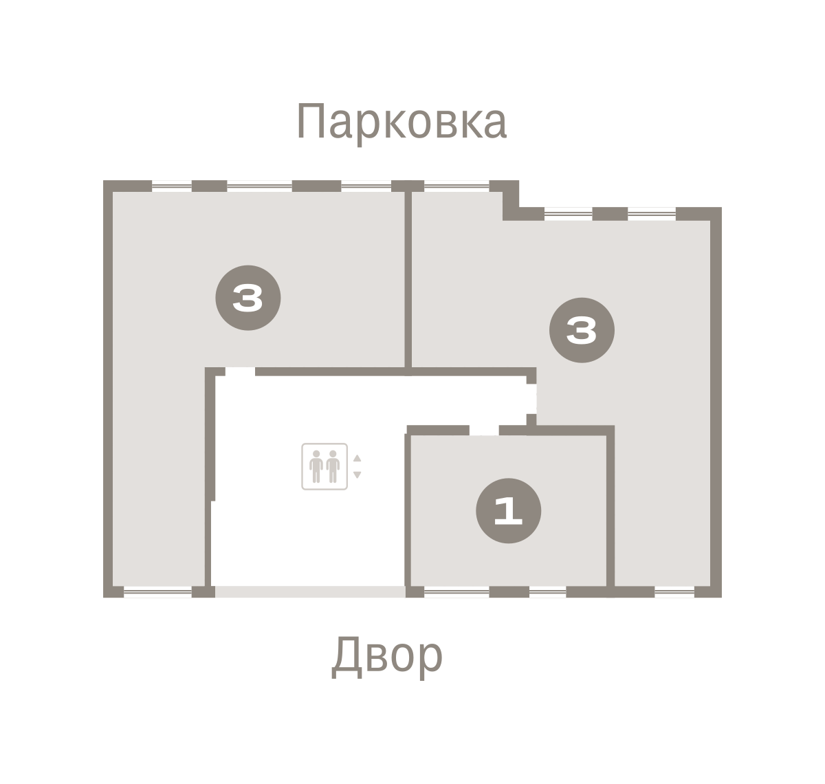 Квартира с кухней-гостиной и тремя спальнями в Бруснике в Академическом. Особенности планировки: окна на две стороны, гардеробная, вид во двор, разнесённые спальни, предчистовая отделка, мастер-спальня, балкон.