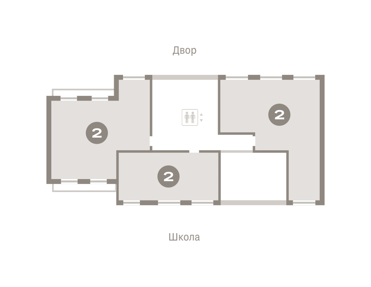 Квартира с кухней-гостиной и двумя спальнями в Бруснике в Академическом. Особенности планировки: второй санузел, гардеробная, вид во двор, разнесённые спальни, предчистовая отделка, мастер-спальня, балкон.