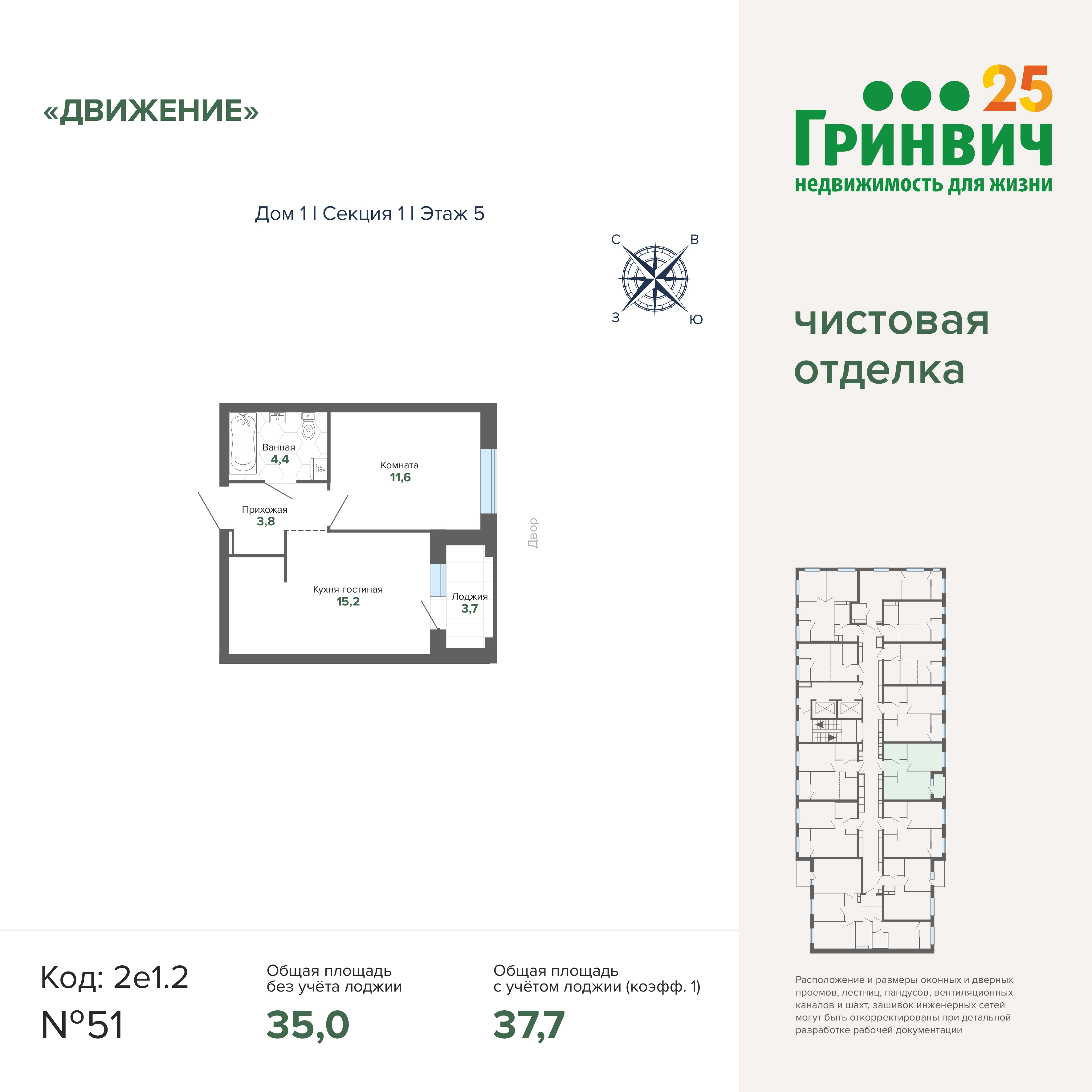 1-к квартира | 35.54 м² | 12 - 17 эт.