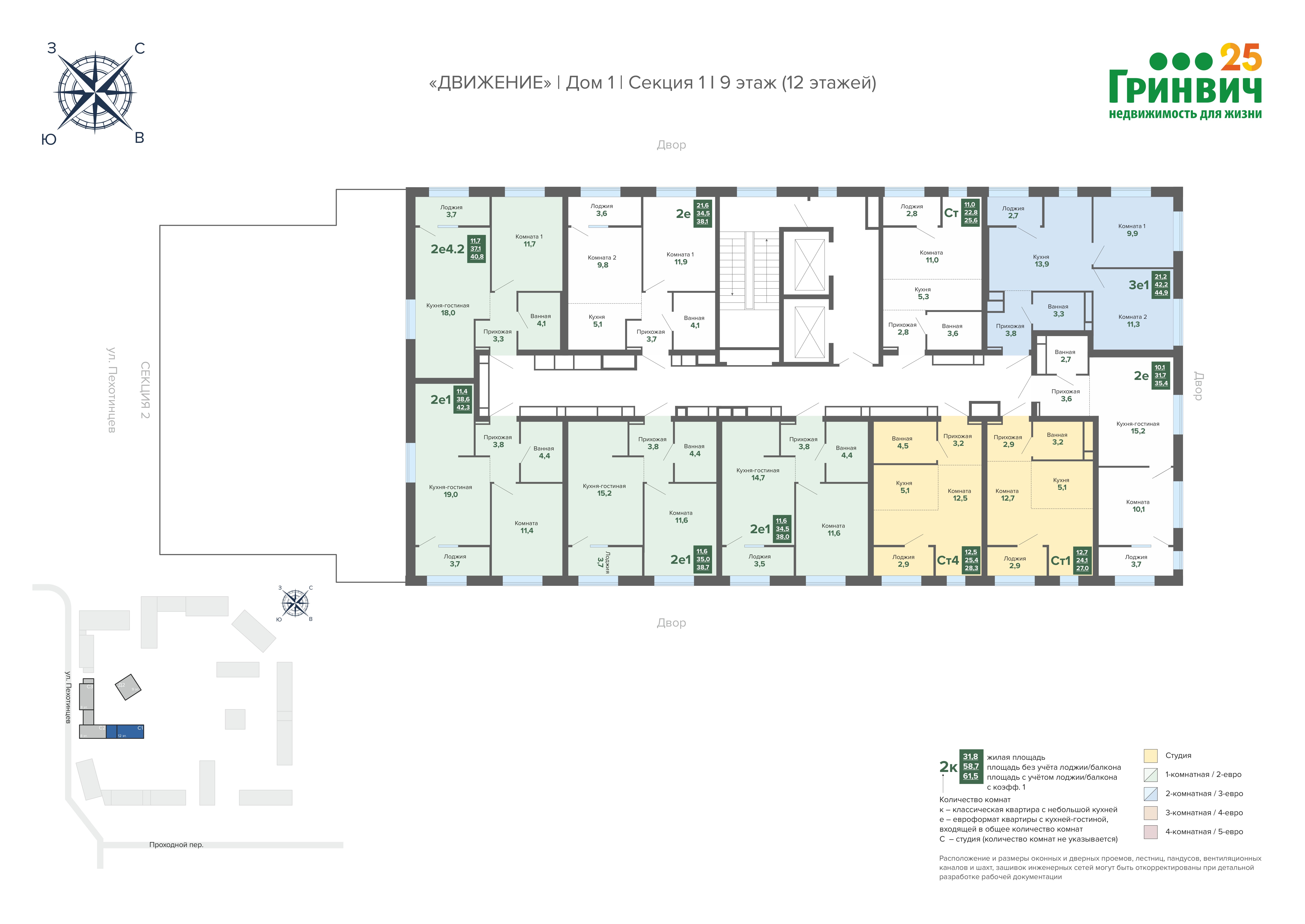 В продаже 1 дом 1 очереди (три секции от 8 до 12 этажей).