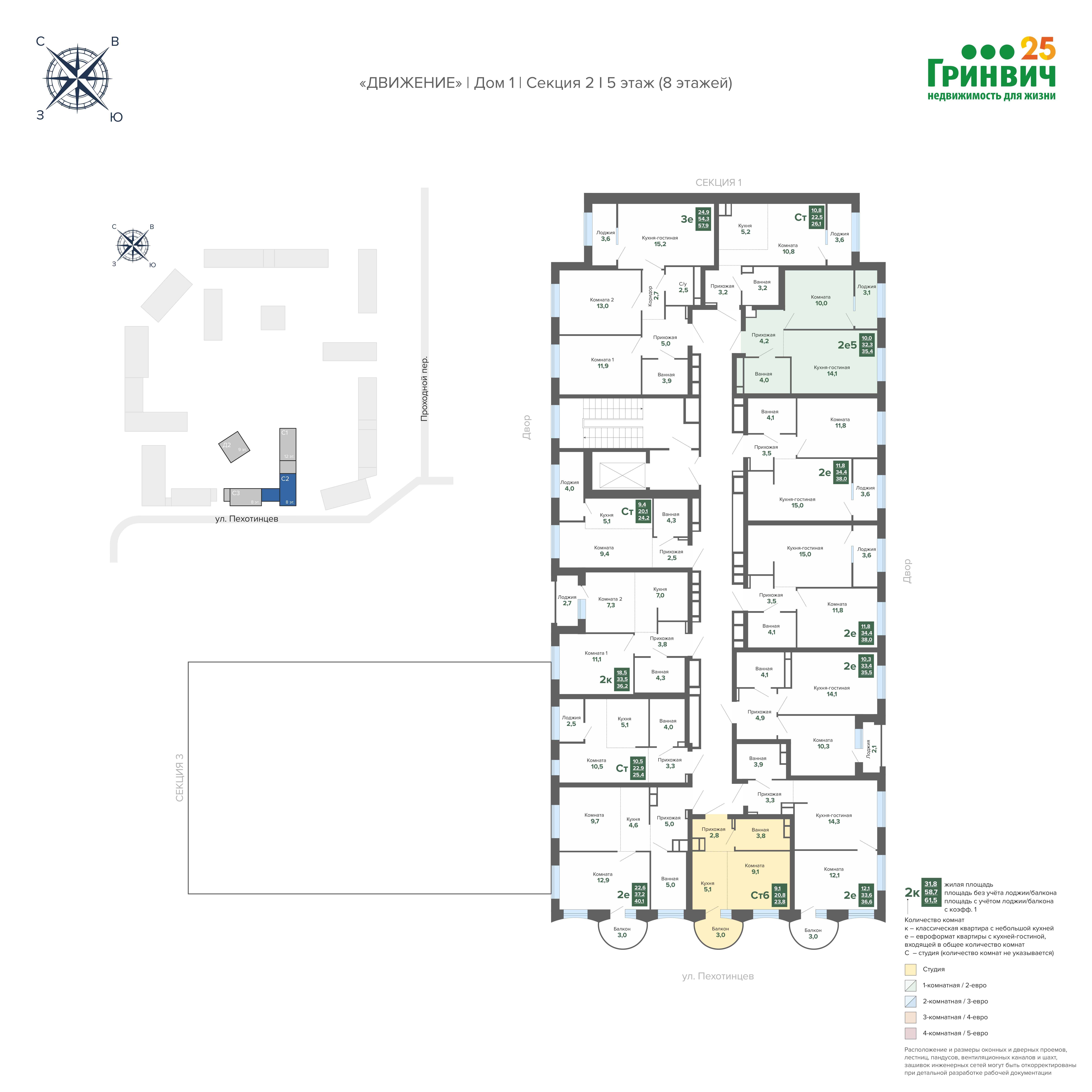 В продаже 1 дом 1 очереди (три секции от 8 до 12 этажей).