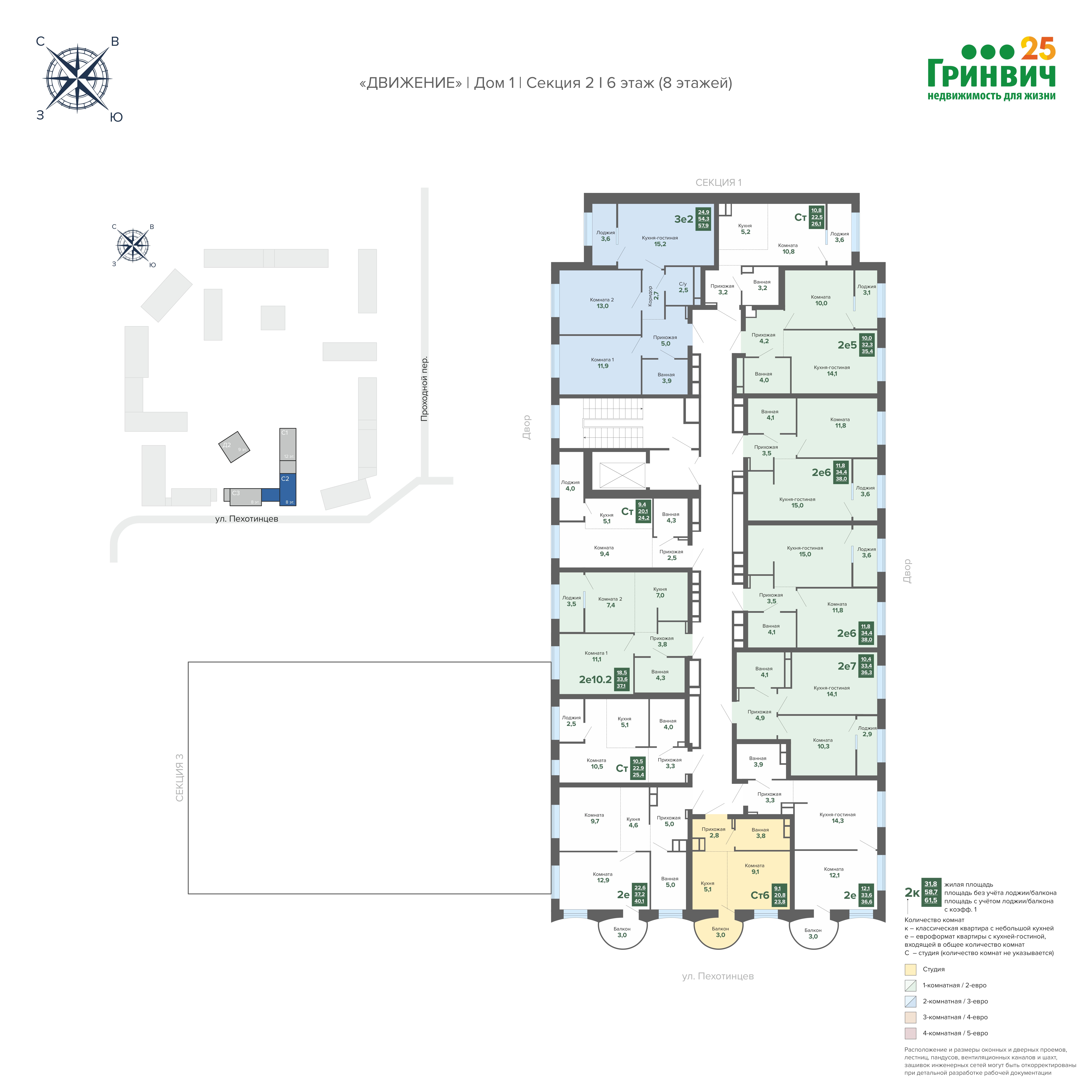 - Кулуарность низкоэтажных секций;
