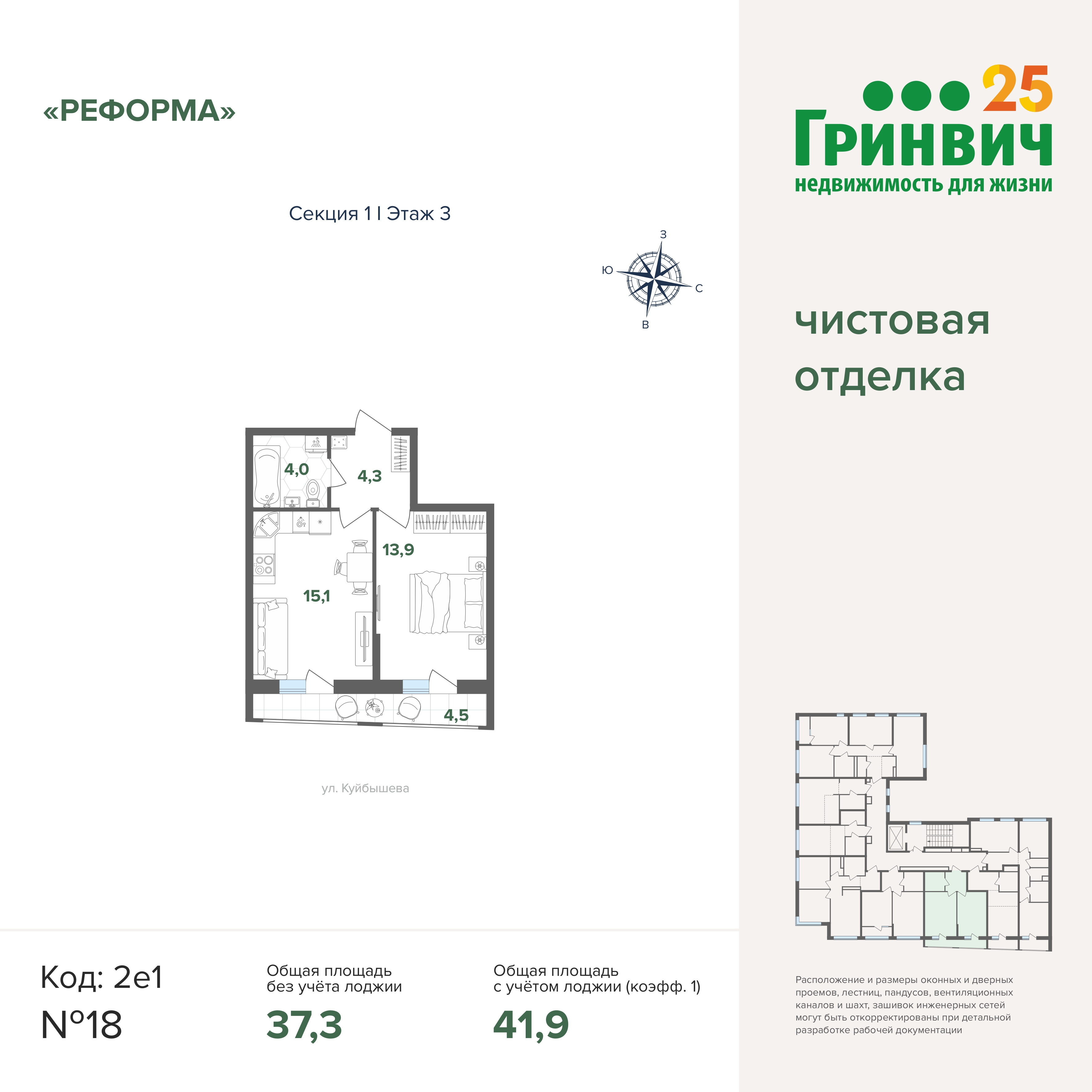 41.50 м² | 15 - 17 эт.