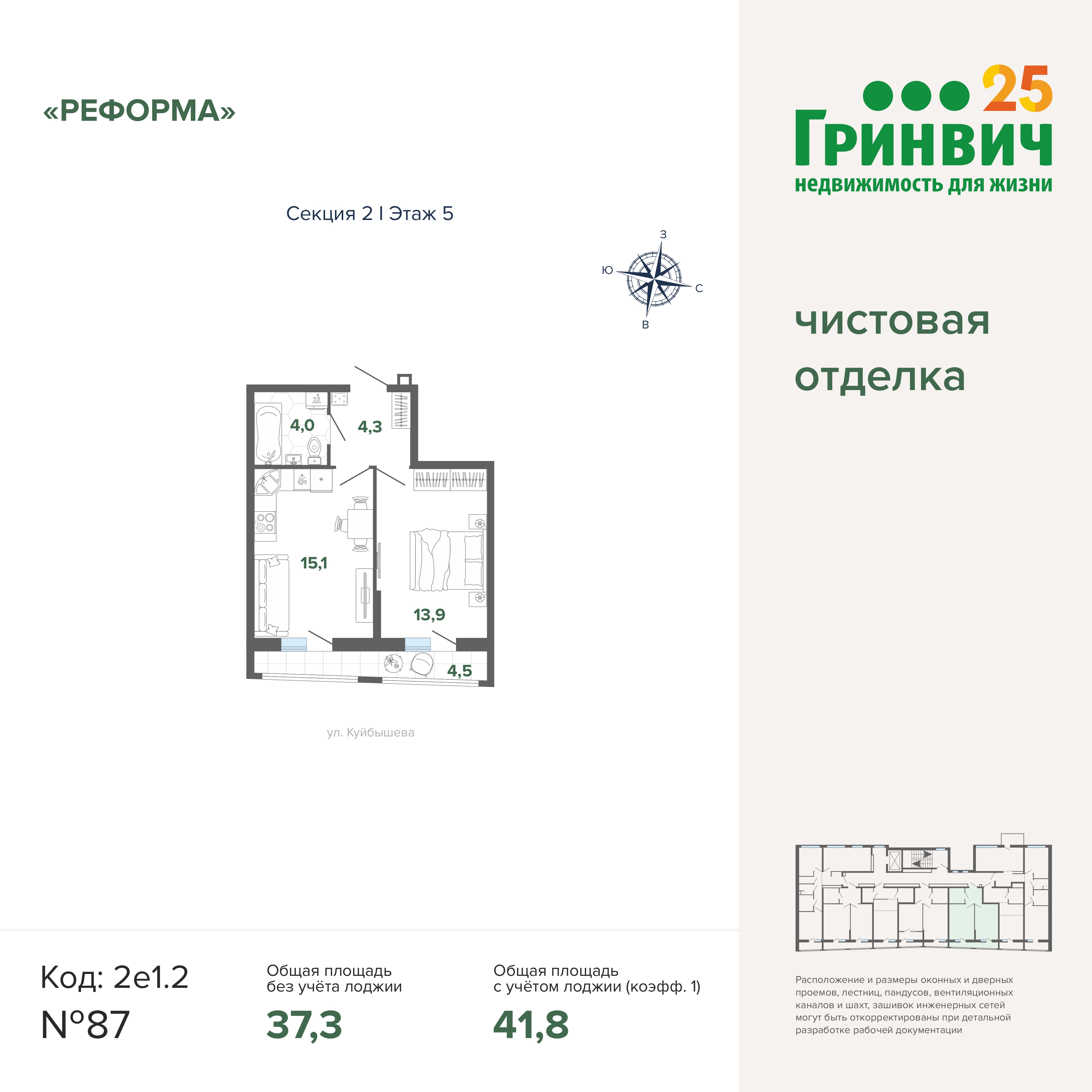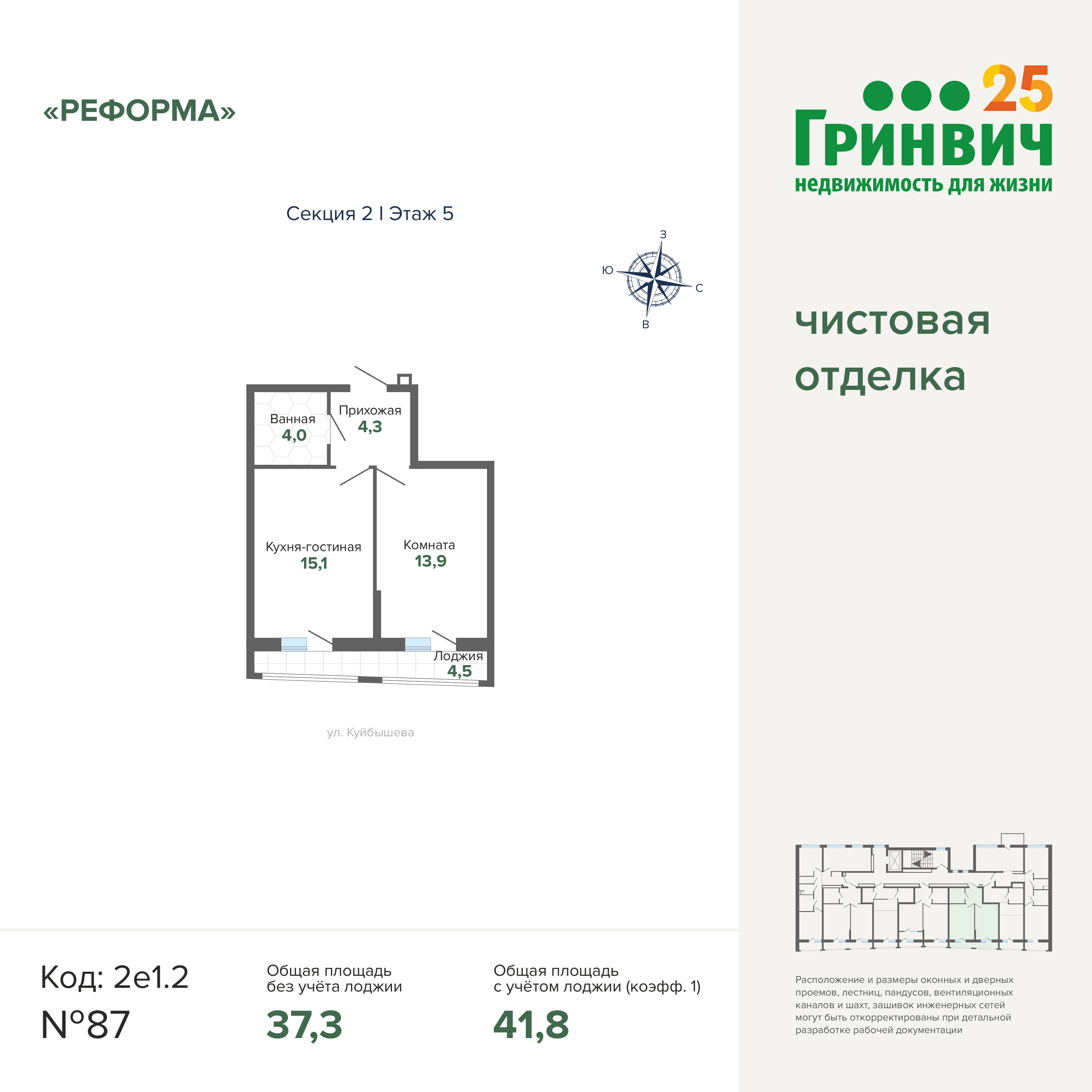 41.50 м² | 15 - 17 эт.