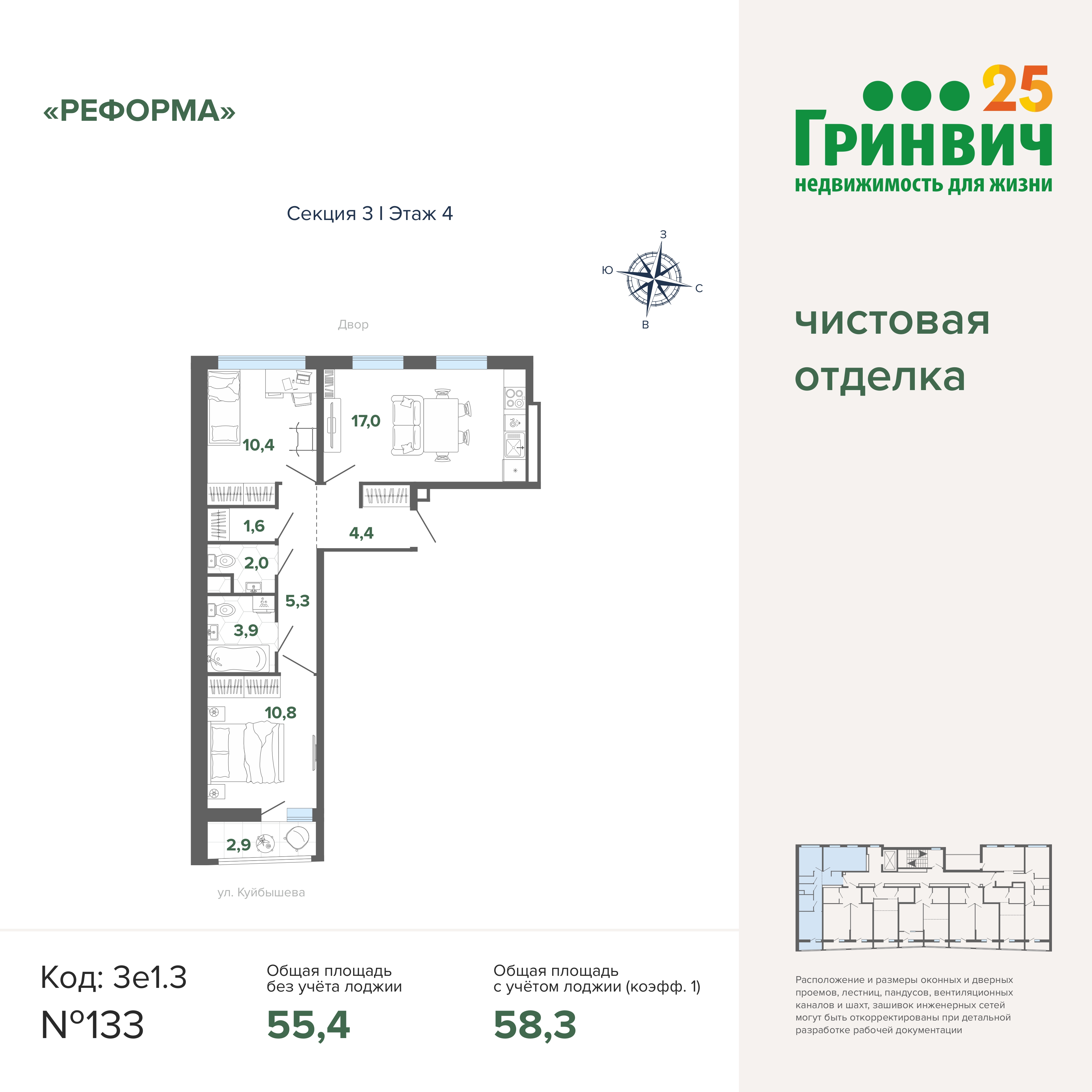 54.80 м² | 8 - 19 эт.