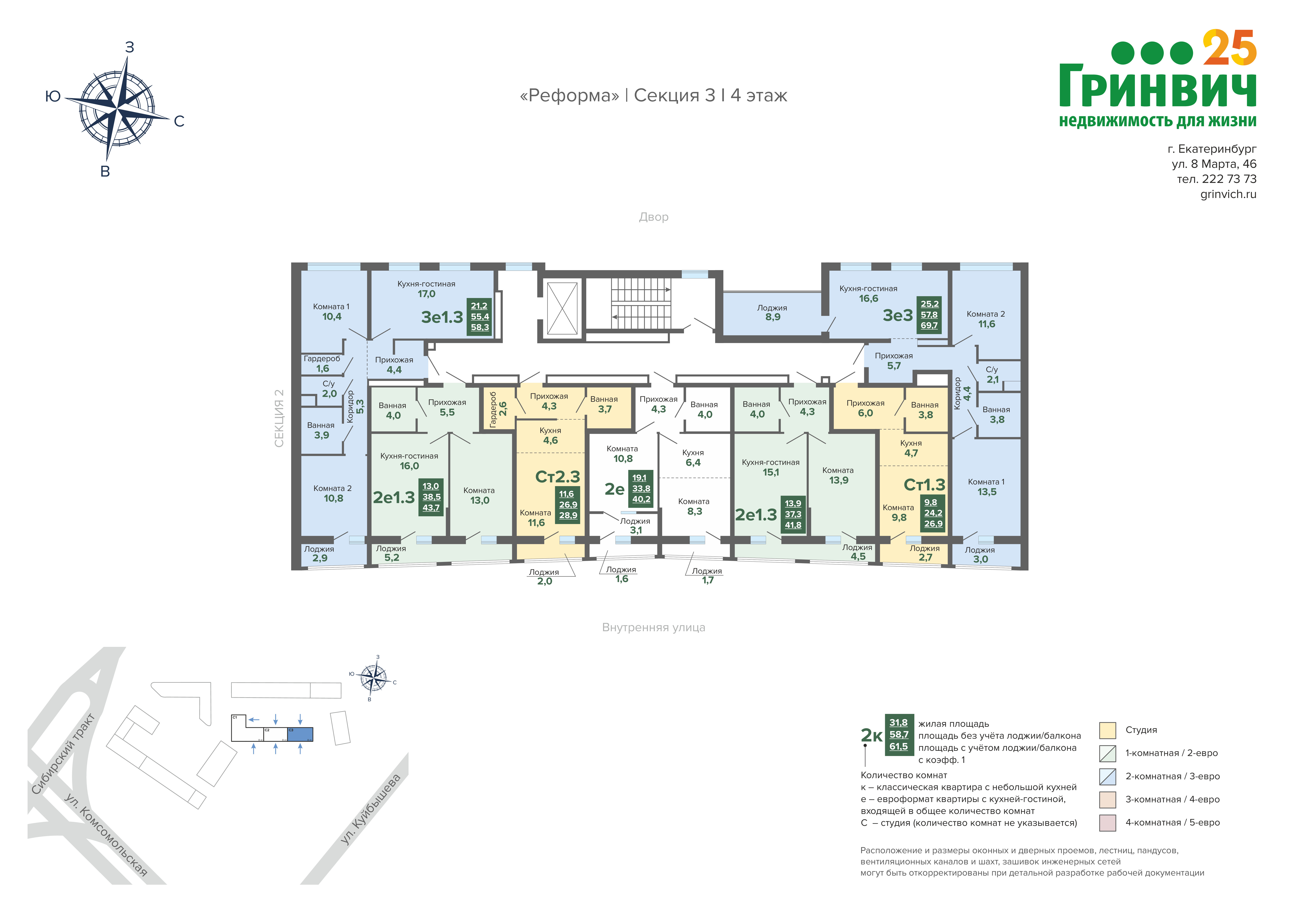 58.33 м² | 4 - 8 эт.