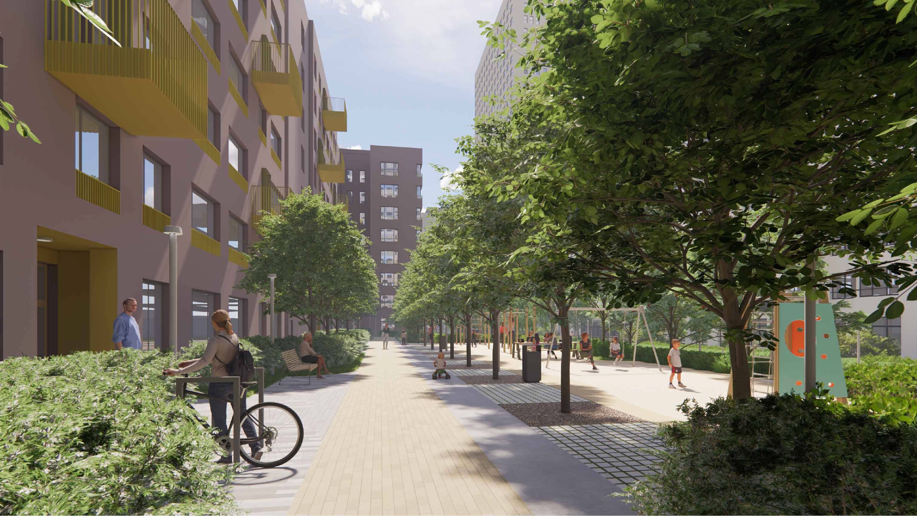 - Закрытый от посторонних двор-сад — зелёный оазис с прогулочными аллеями;