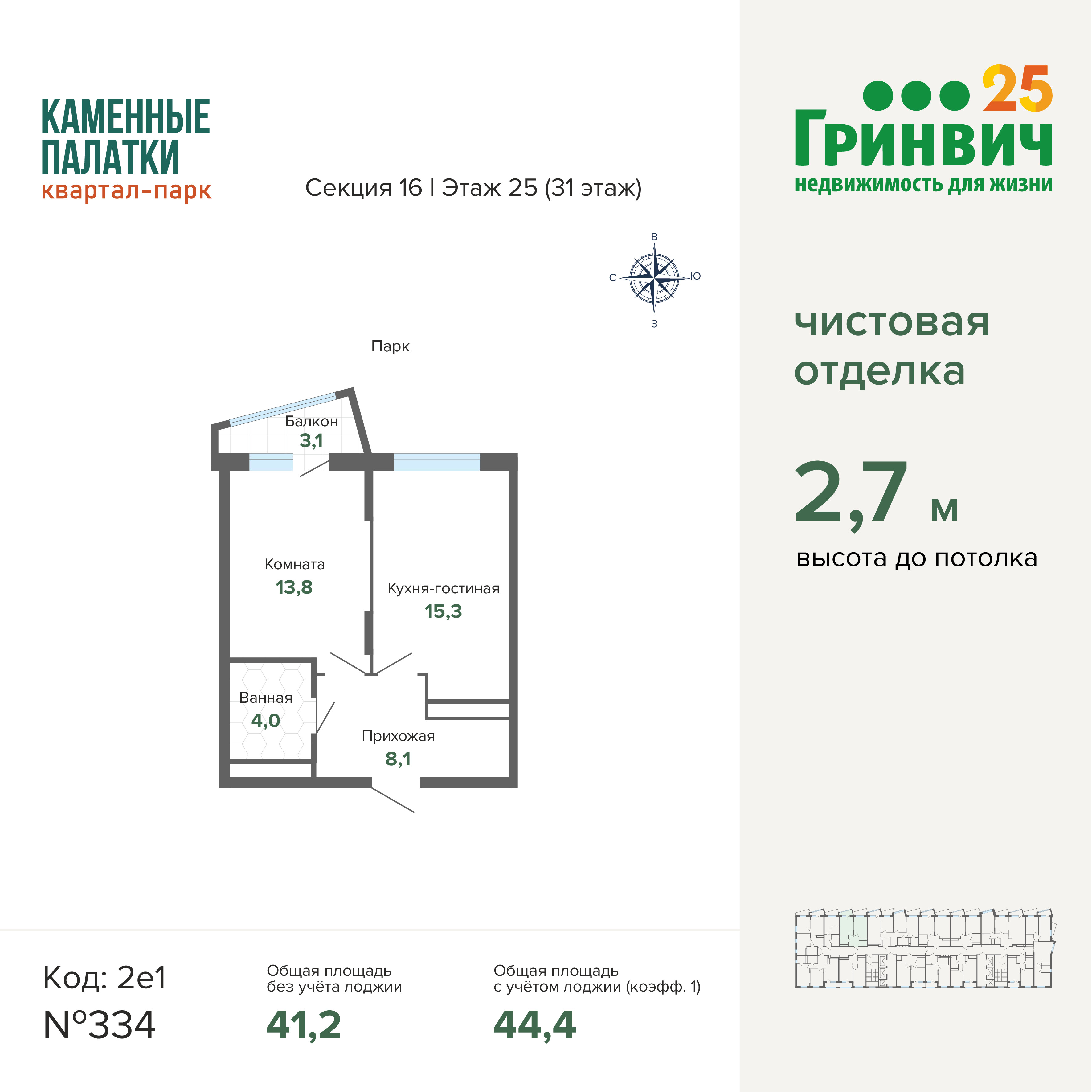 41.08 м² | 25 - 31 эт.