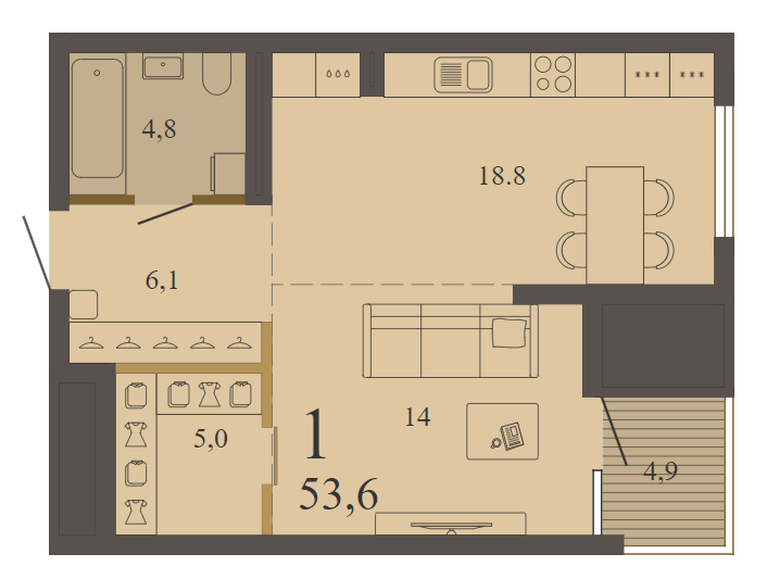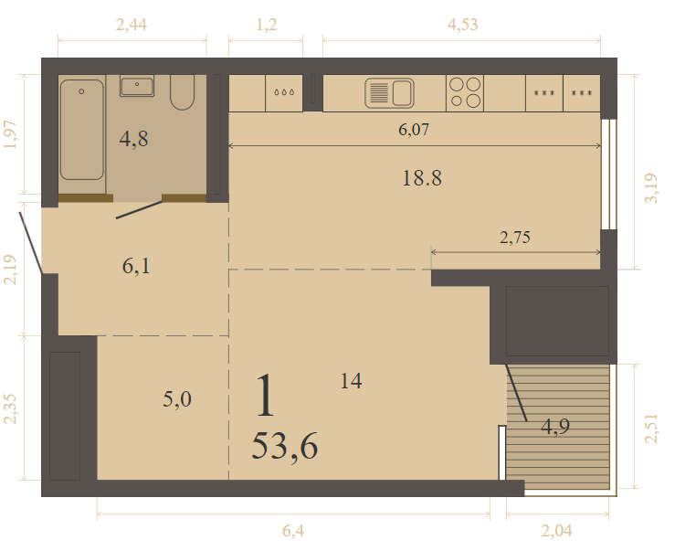 53.60 м² | 5 - 8 эт.
