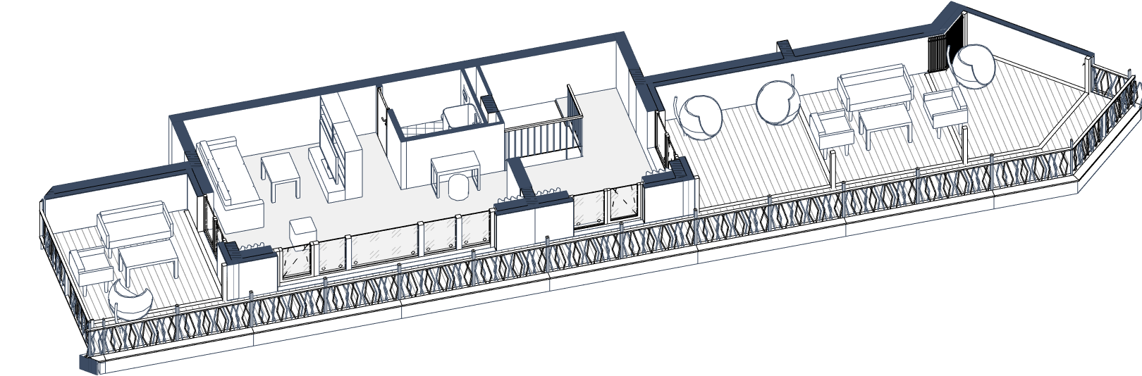 Двухуровневая квартира с кухней-гостиной и двумя спальнями в Южных кварталах. Особенности планировки: второй санузел, двухуровневая, предчистовая отделка, летняя кухня на крыше, терраса, терраса на крыше.