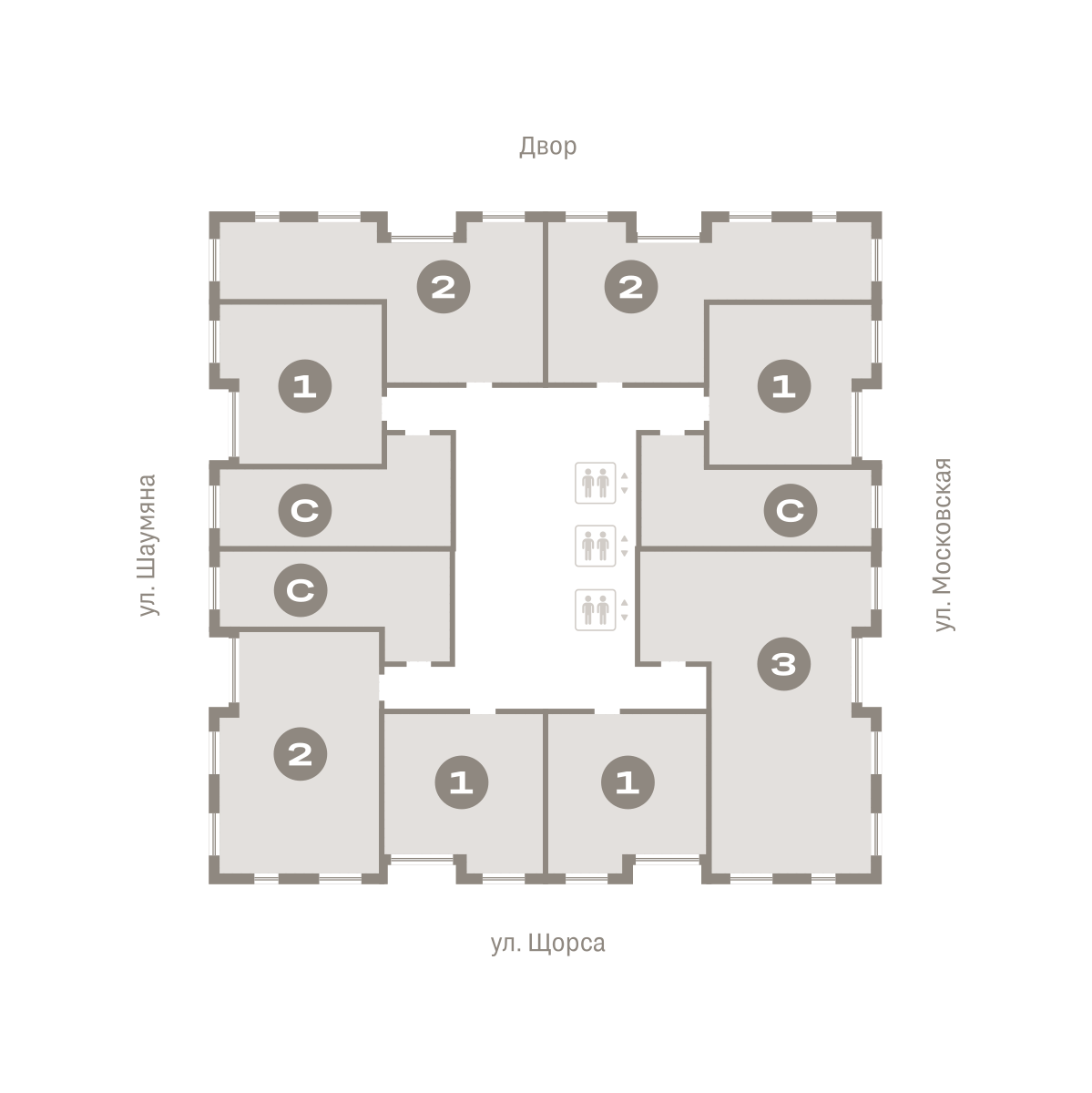 Двор закрыт от машин и оформлен в стиле скандинавского натурализма. Он похож на парк, сформировавшийся без участия человека и сохраняющий обаяние в течение всего года. Под домом запроектирован подземный паркинг, а также кладовые для хранения сезонных вещей.