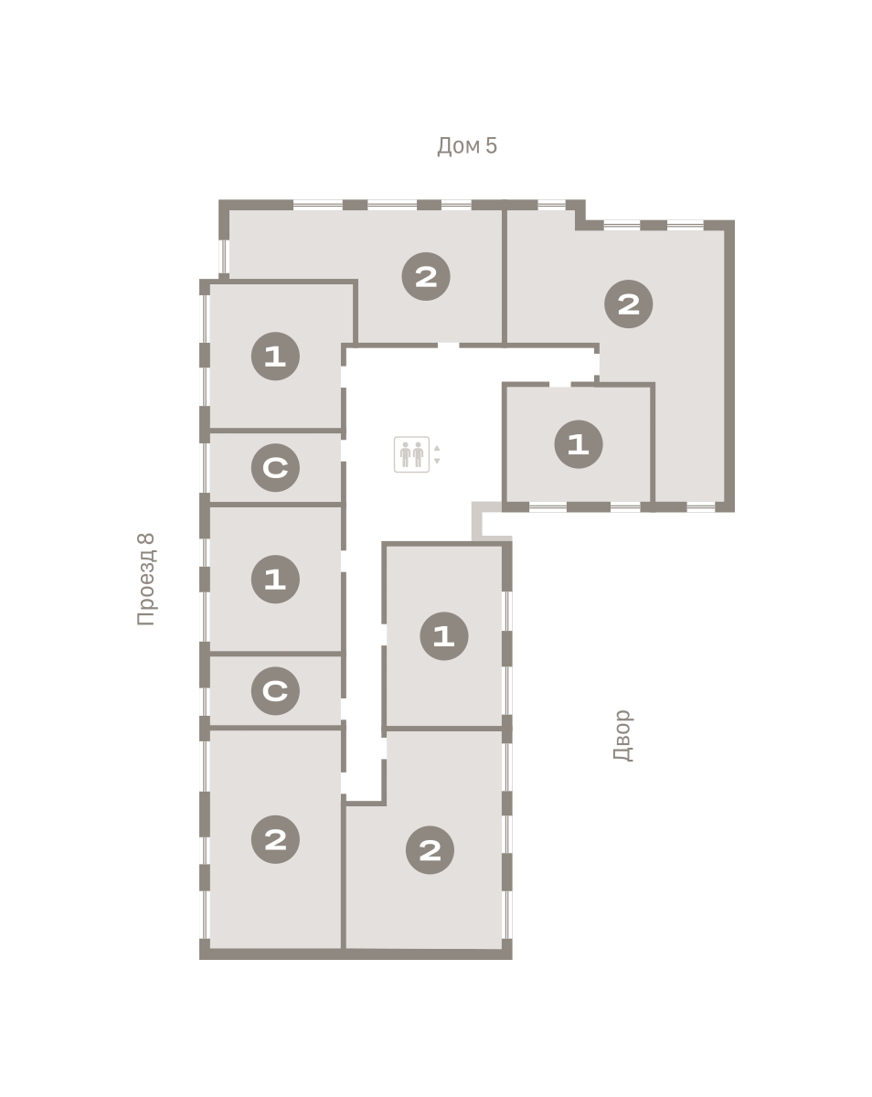 Квартира с кухней-гостиной и тремя спальнями в Бруснике в Академическом. Особенности планировки: второй санузел, гардеробная, рабочий кабинет, вид во двор, разнесённые спальни, предчистовая отделка, мастер-спальня, балкон.