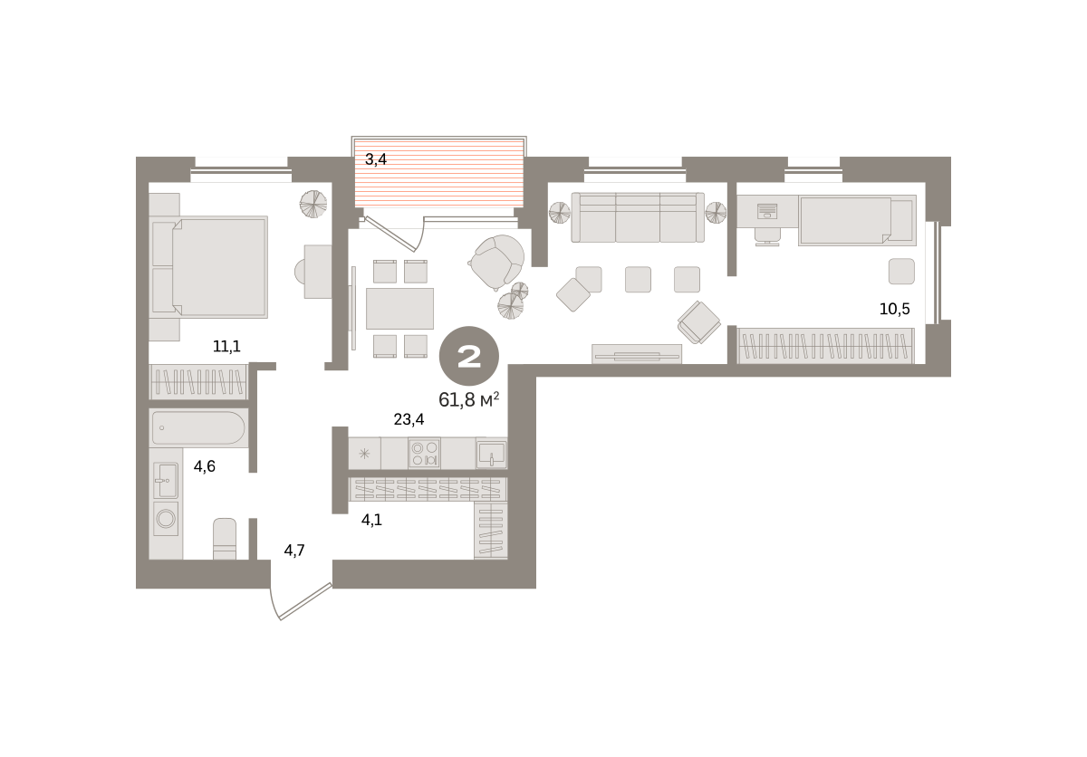 Двухкомнатная квартира в «Южном квартале» — это квартира с большой кухней, которая объединена с гостиной, и двумя спальнями. Кухня-гостиная — это общественное пространство квартиры, где удобно собираться с семьей и друзьями. Здесь легко поместится зона приготовления пищи, стол со стульями для совместных трапез, мягкие места для отдыха и телевизор. Купить двухкомнатную квартиру в юго-западном районе Екатеринбурга рядом с автовокзалом выгодно напрямую от застройщика «Брусника».