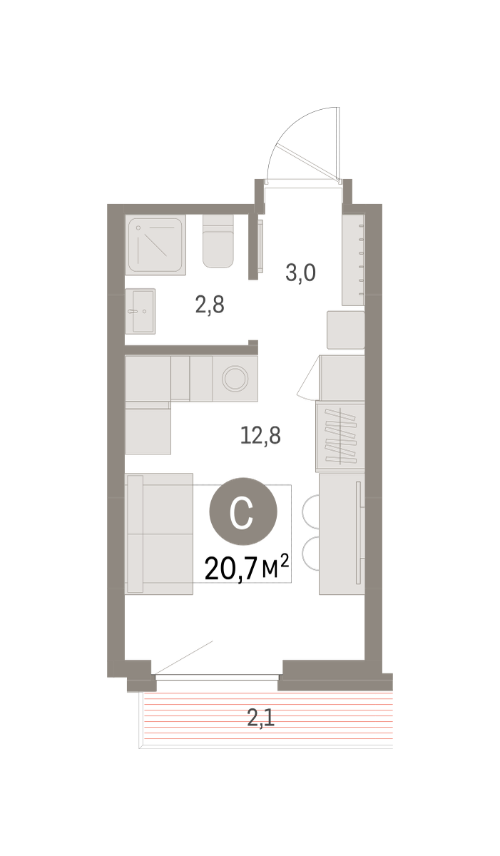 Студия в Бруснике в Академическом. Особенности планировки: предчистовая отделка, балкон. № квартиры в нашей базе: АКД05-Ж6.5.3.