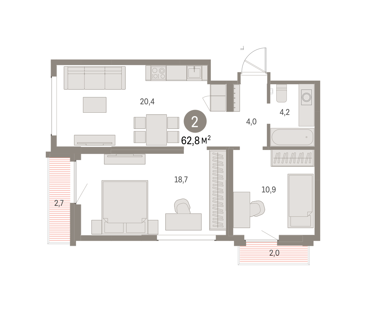 Продаётся с кладовой. Квартира с кухней-гостиной и двумя спальнями в Бруснике в Академическом. Особенности планировки: лоджия, предчистовая отделка, балкон. № квартиры в нашей базе: АКД05-Ж7.6.2.