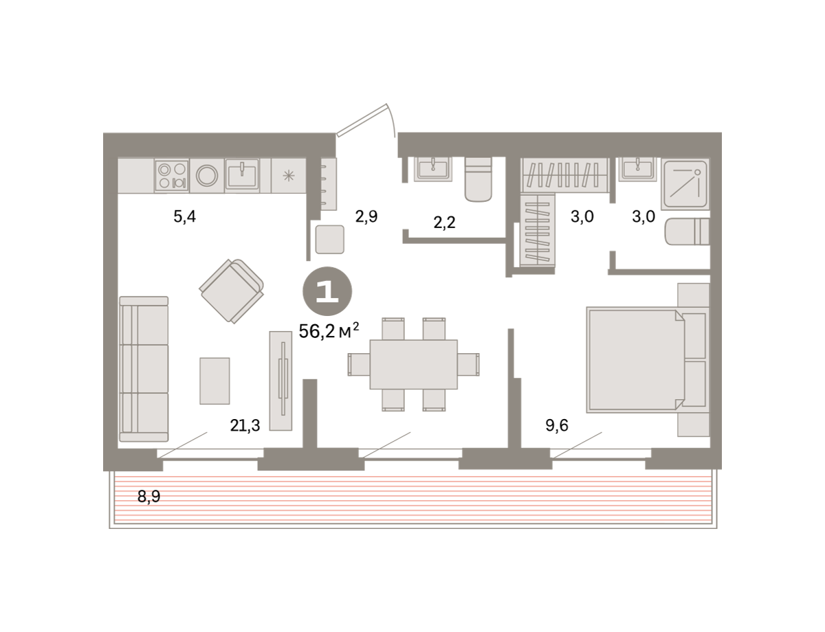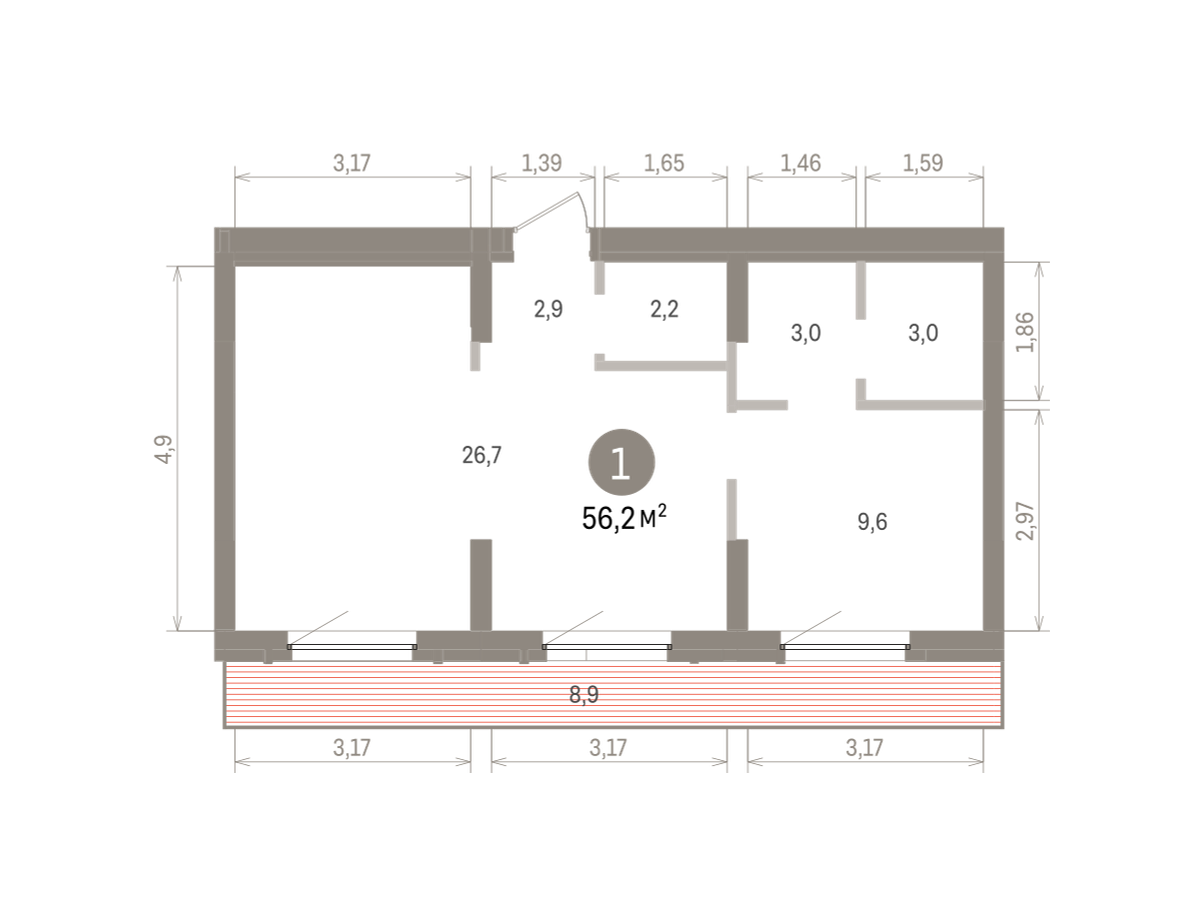 56.00 м² | 8 - 9 эт.