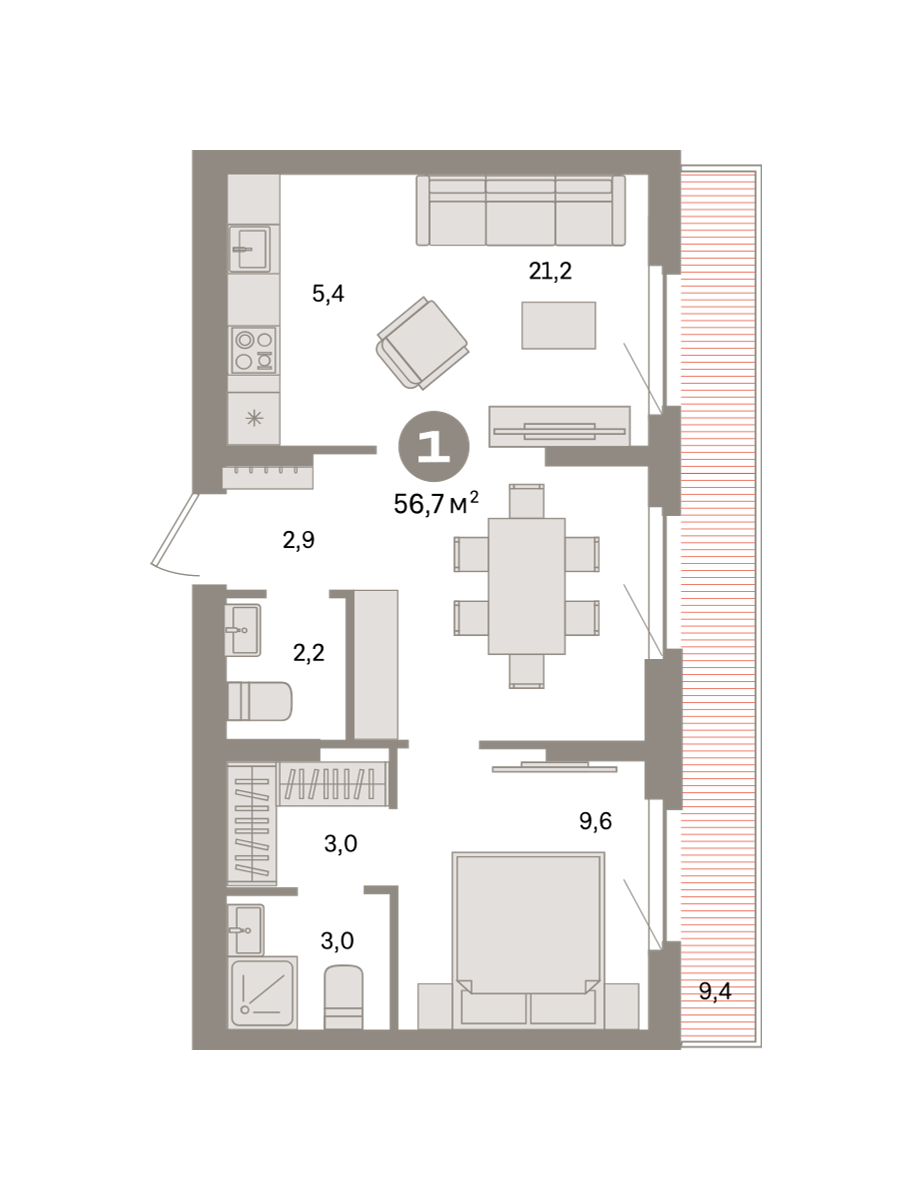 Продаётся с кладовой. Квартира с кухней-гостиной и одной спальней в квартале «Депо». Особенности планировки: гардеробная, предчистовая отделка, мастер-спальня, терраса на крыше. № квартиры в нашей базе: ДЕП07-Ж4.8.2.