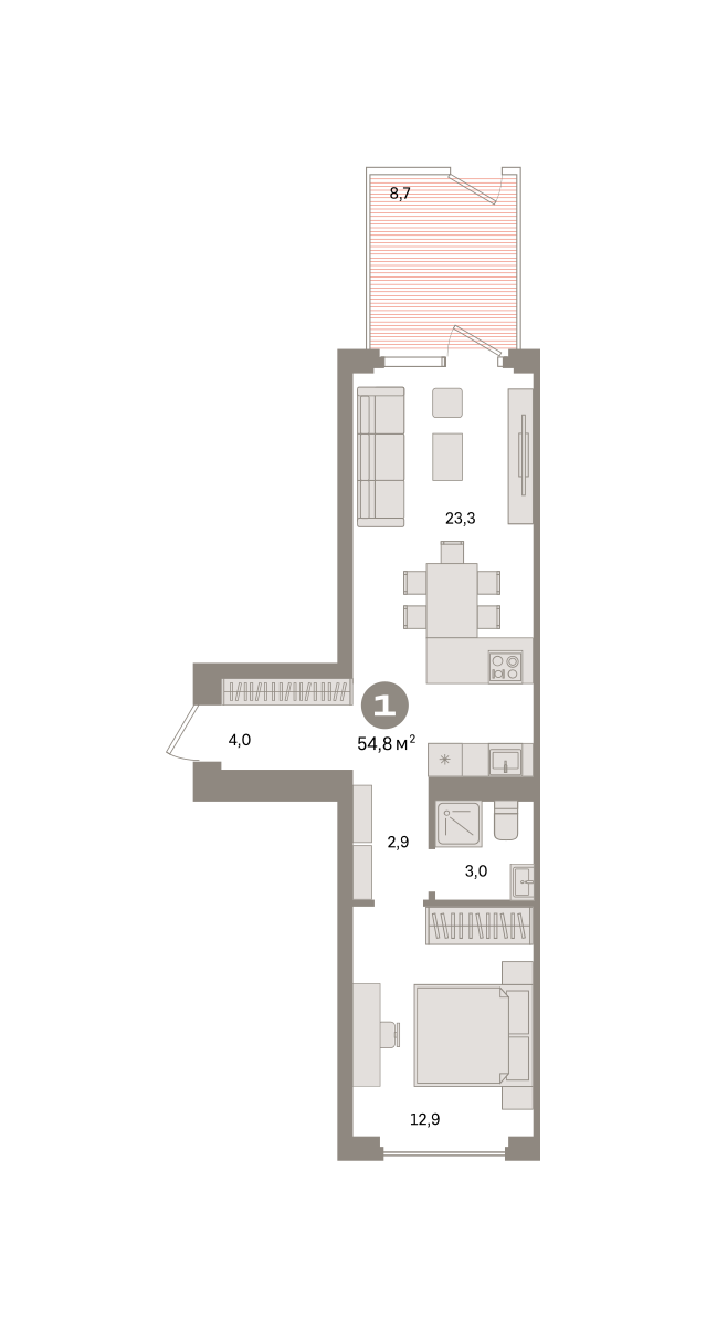 Продаётся с кладовой. Квартира с кухней-гостиной и одной спальней в квартале «Депо». Особенности планировки: окна на две стороны, вид во двор, предчистовая отделка, терраса. № квартиры в нашей базе: ДЕП07-Ж6.2.1.