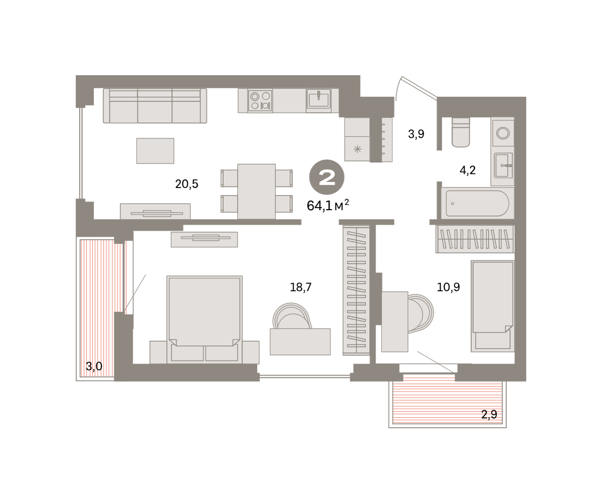 Продаётся с кладовой. Квартира с кухней-гостиной и двумя спальнями в квартале «Депо». Особенности планировки: лоджия, предчистовая отделка. № квартиры в нашей базе: ДЕП07-Ж6.2.4.