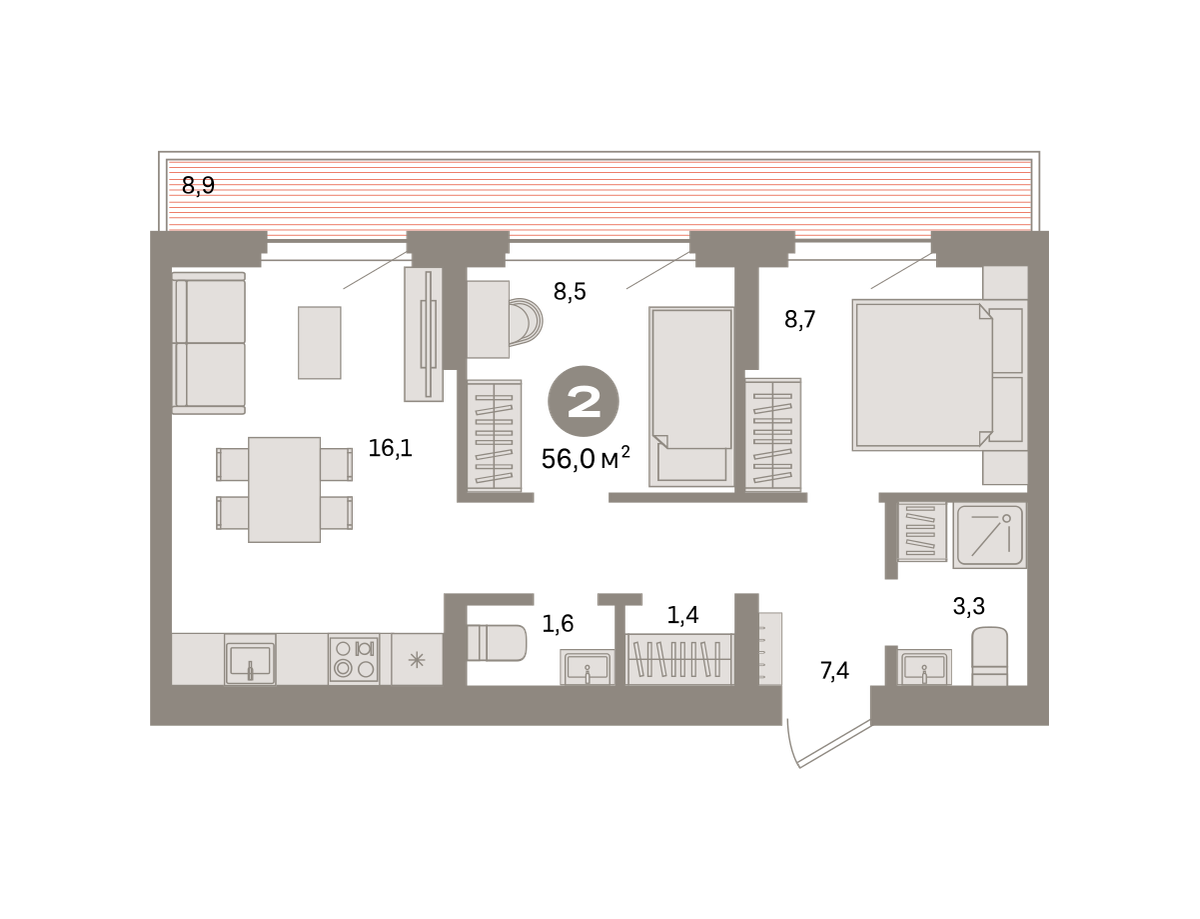 Продаётся с кладовой. Квартира с кухней-гостиной и двумя спальнями в квартале «Депо». Особенности планировки: второй санузел, гардеробная, предчистовая отделка, терраса на крыше. № квартиры в нашей базе: ДЕП07-Ж2.7.4.