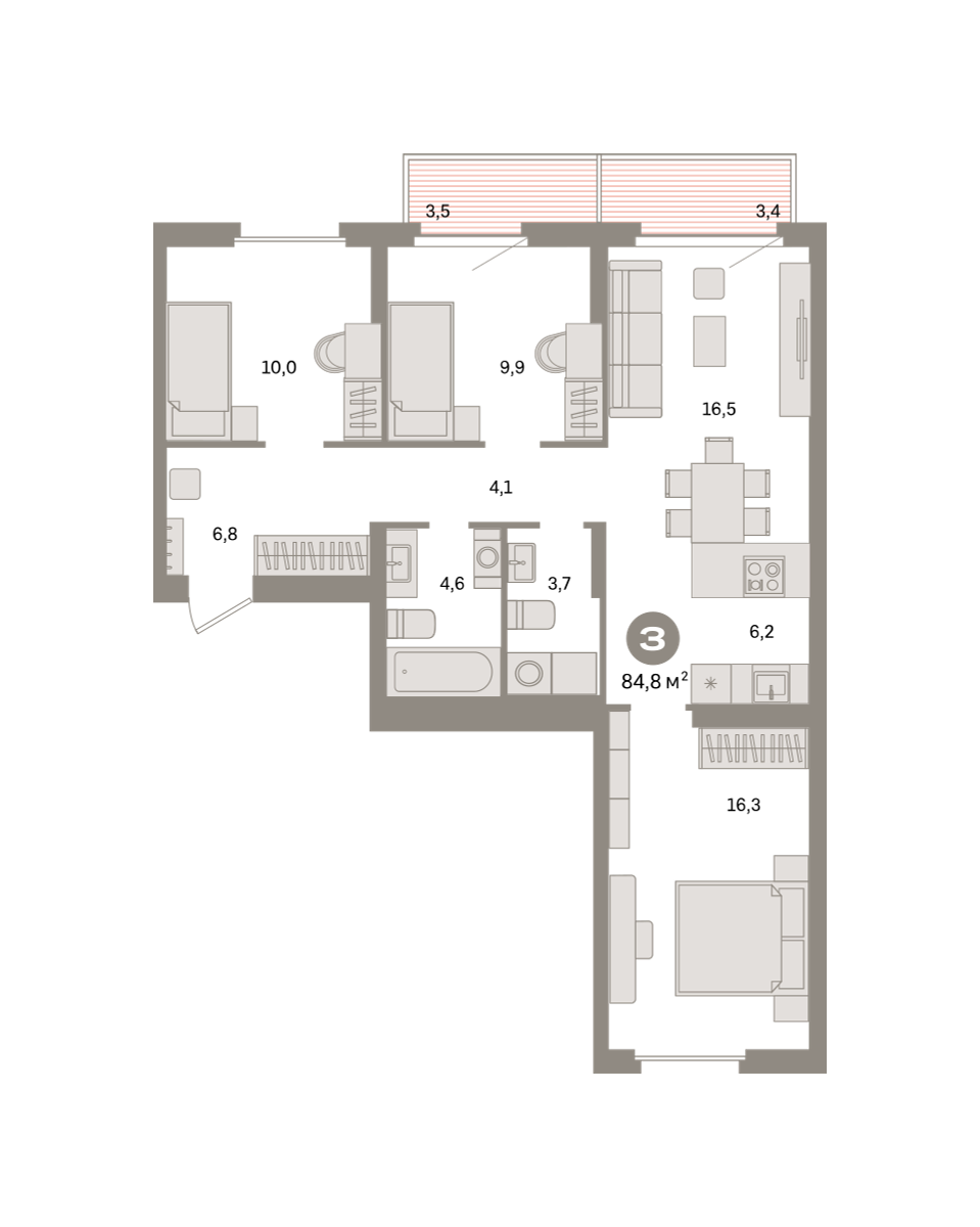 Продаётся с кладовой. Квартира с кухней-гостиной и тремя спальнями в квартале «Депо». Особенности планировки: окна на две стороны, второй санузел, вид во двор, разнесённые спальни, предчистовая отделка, балкон. № квартиры в нашей базе: ДЕП07-Ж5.5.1.