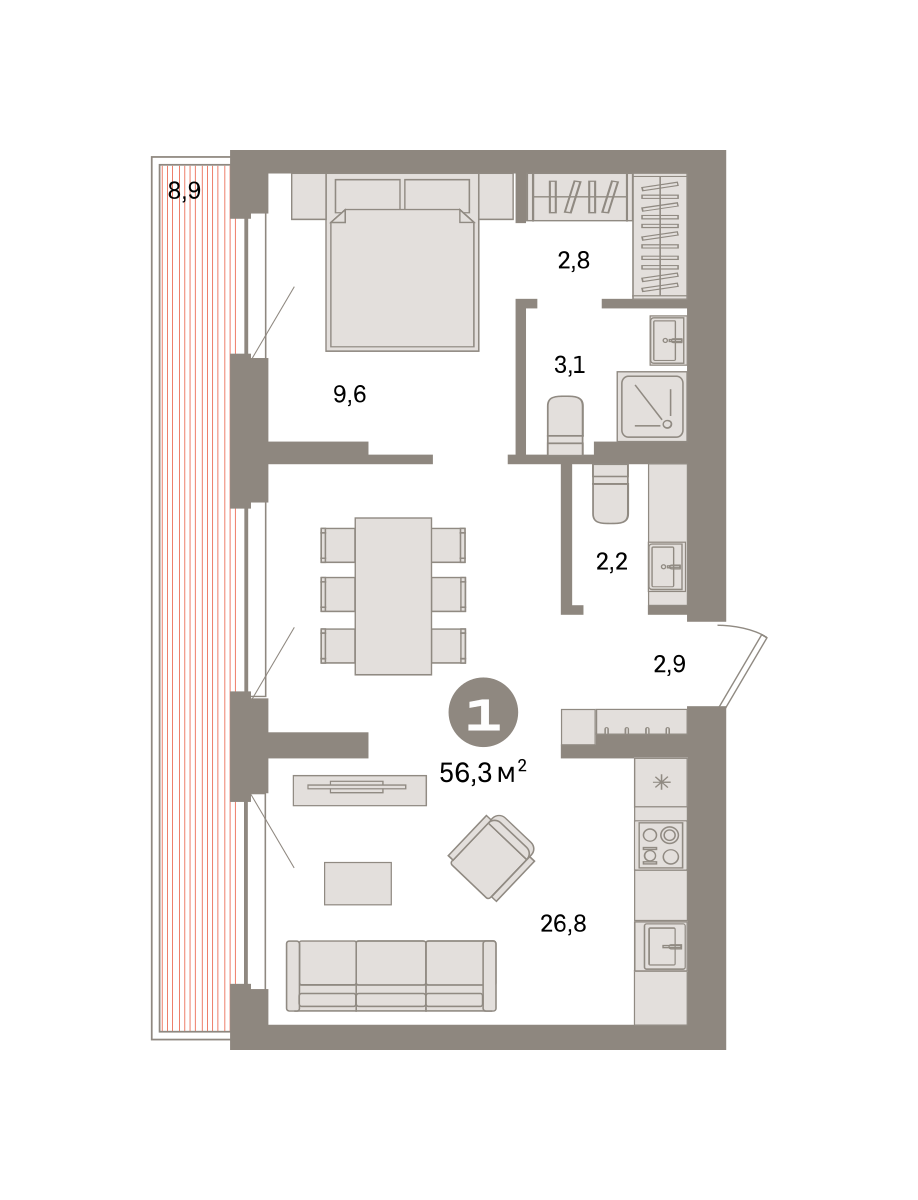 Продаётся с кладовой. Квартира с кухней-гостиной и одной спальней в квартале «Депо». Особенности планировки: предчистовая отделка, терраса на крыше. № квартиры в нашей базе: ДЕП04-Ж8.8.3.