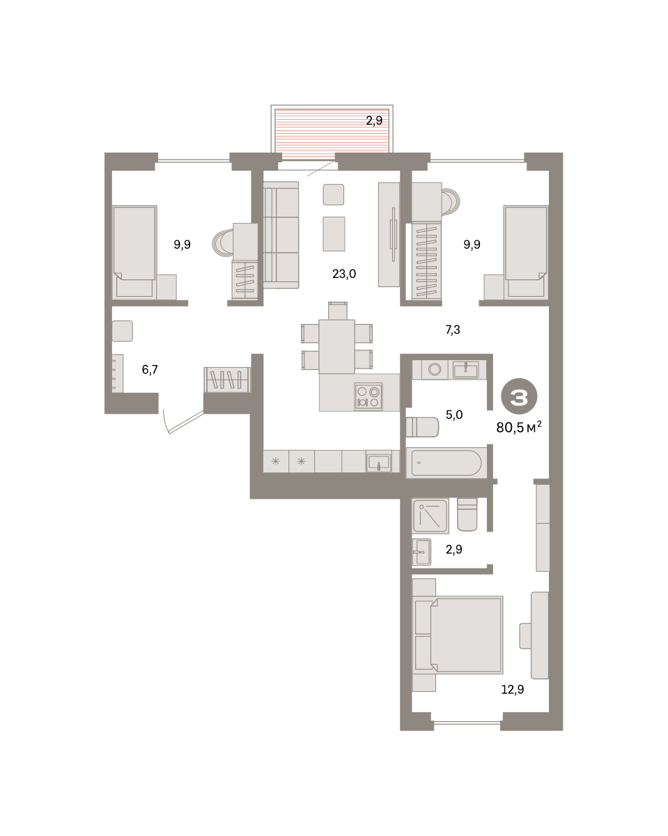 Продаётся с кладовой. Квартира с кухней-гостиной и тремя спальнями в квартале «Депо». Особенности планировки: второй санузел, вид во двор, разнесённые спальни, предчистовая отделка, мастер-спальня, балкон. № квартиры в нашей базе: ДЕП04-Ж8.4.1.