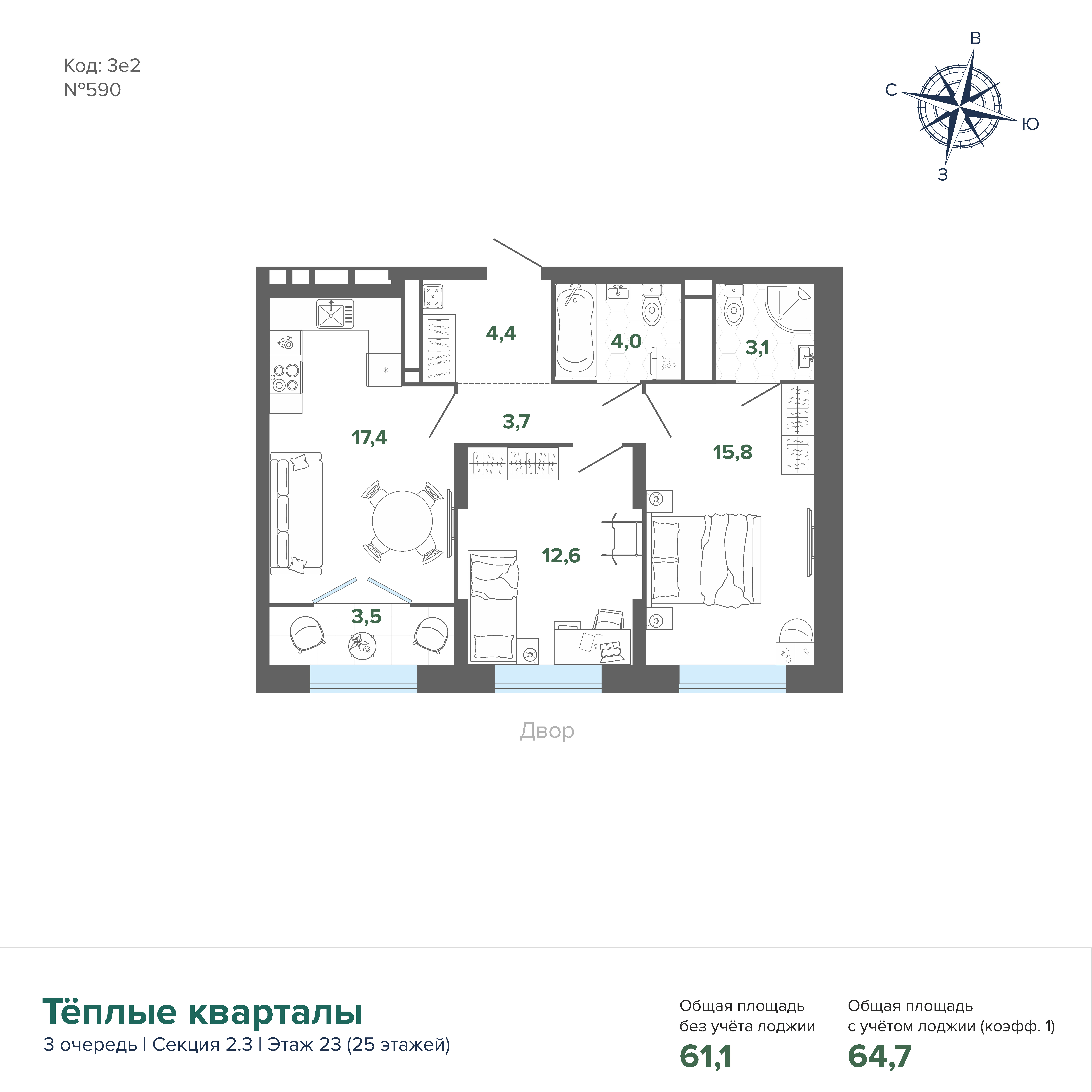 64.67 м² | 23 - 25 эт.