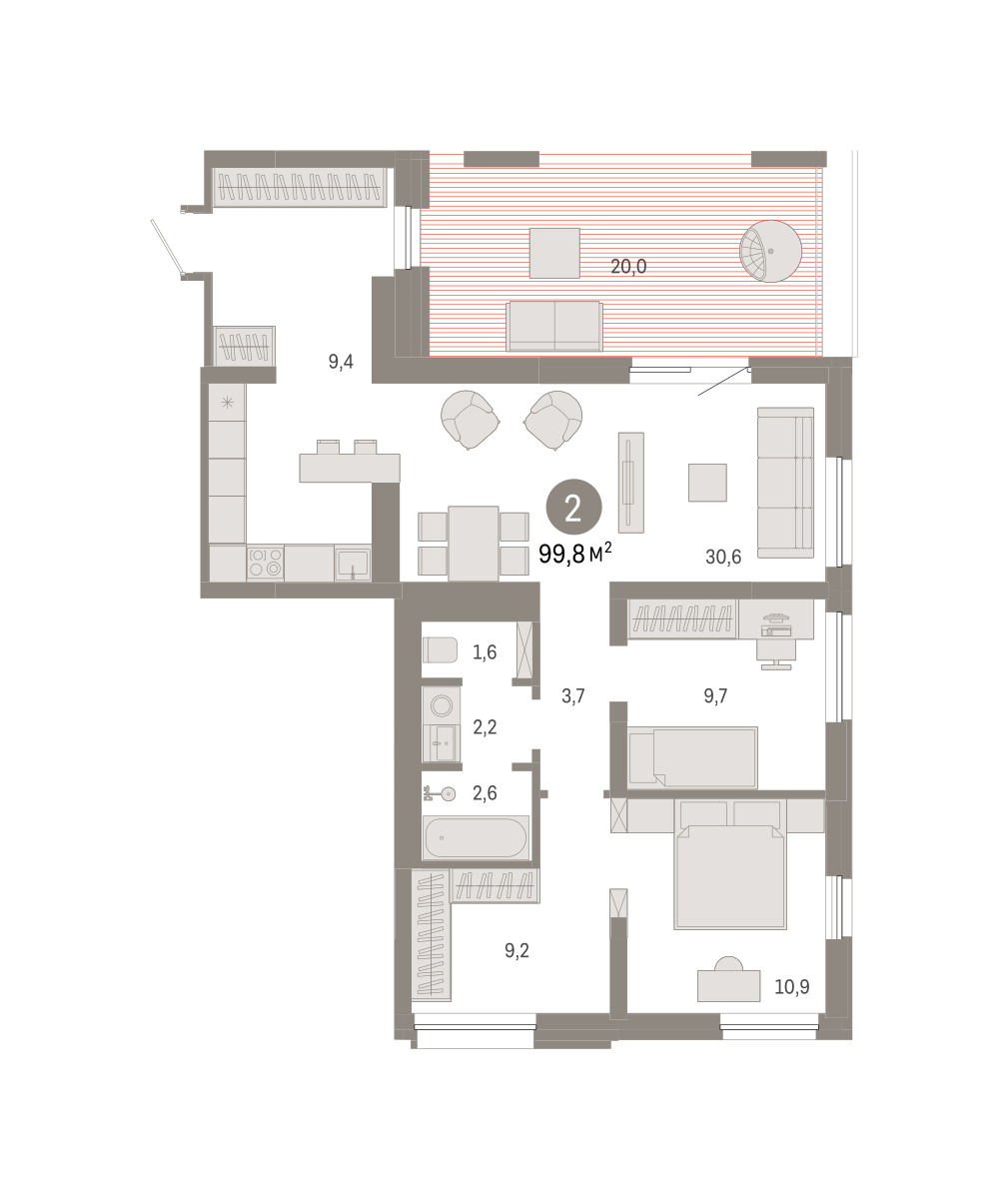 Продаётся с кладовой. Квартира с кухней-гостиной и двумя спальнями в Северном квартале. Особенности планировки: второй санузел, гардеробная, вид во двор, предчистовая отделка, постирочная, терраса на крыше. № квартиры в нашей базе: СКВ03.2-Ж5.7.1.