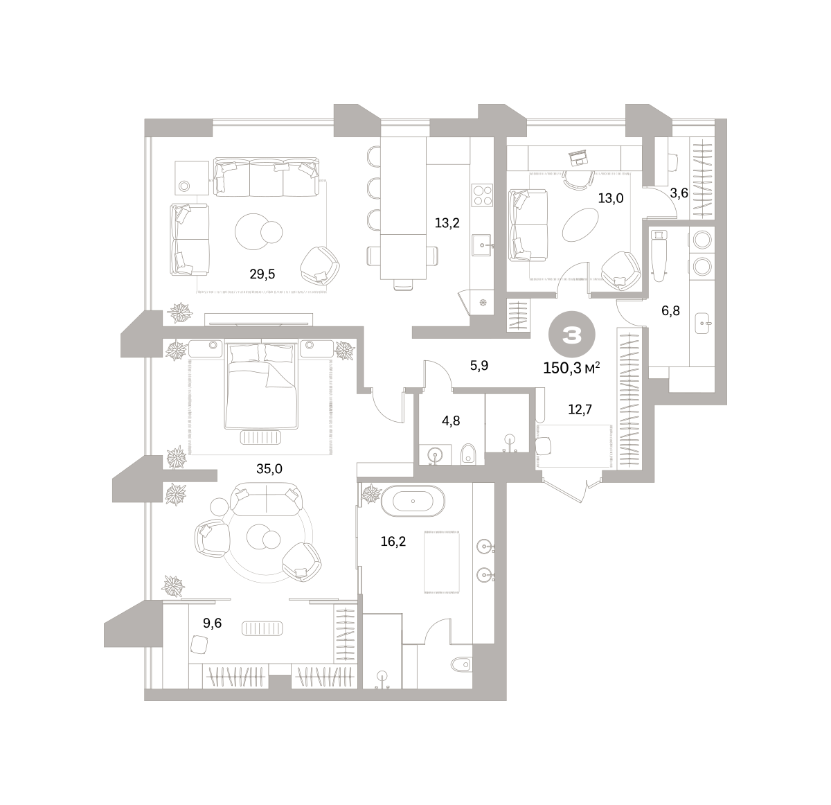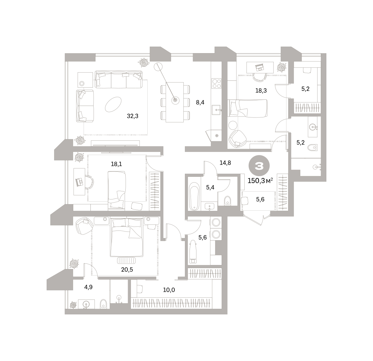 150.00 м² | 15 - 25 эт.